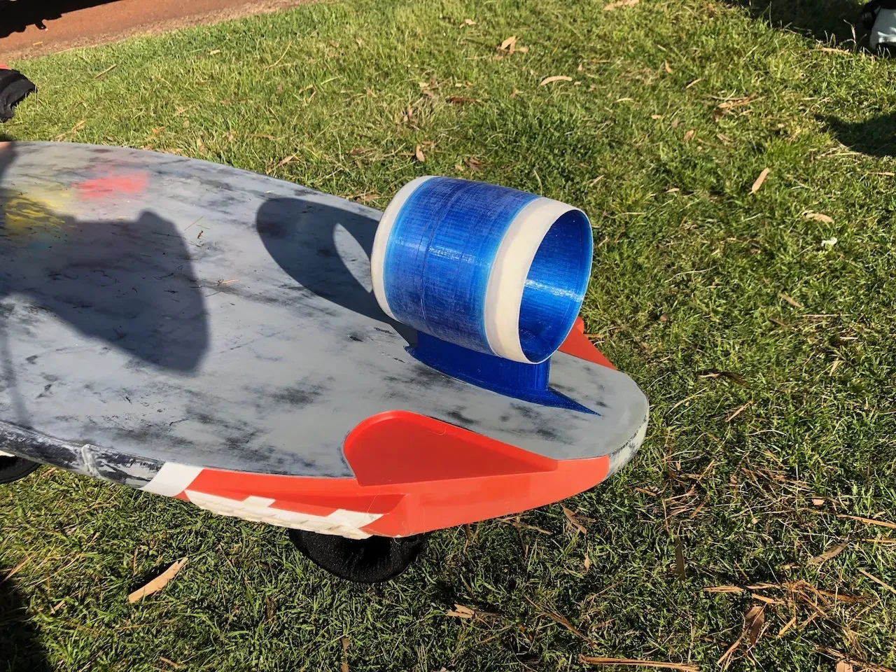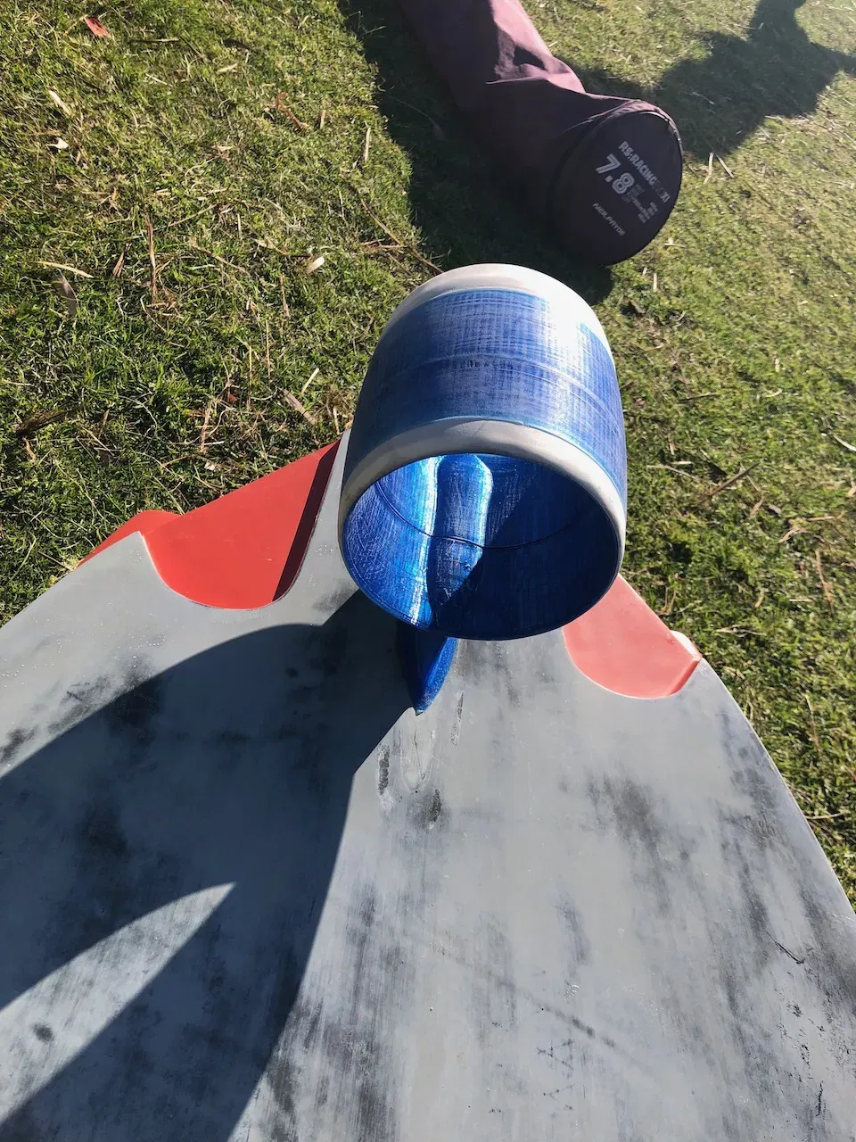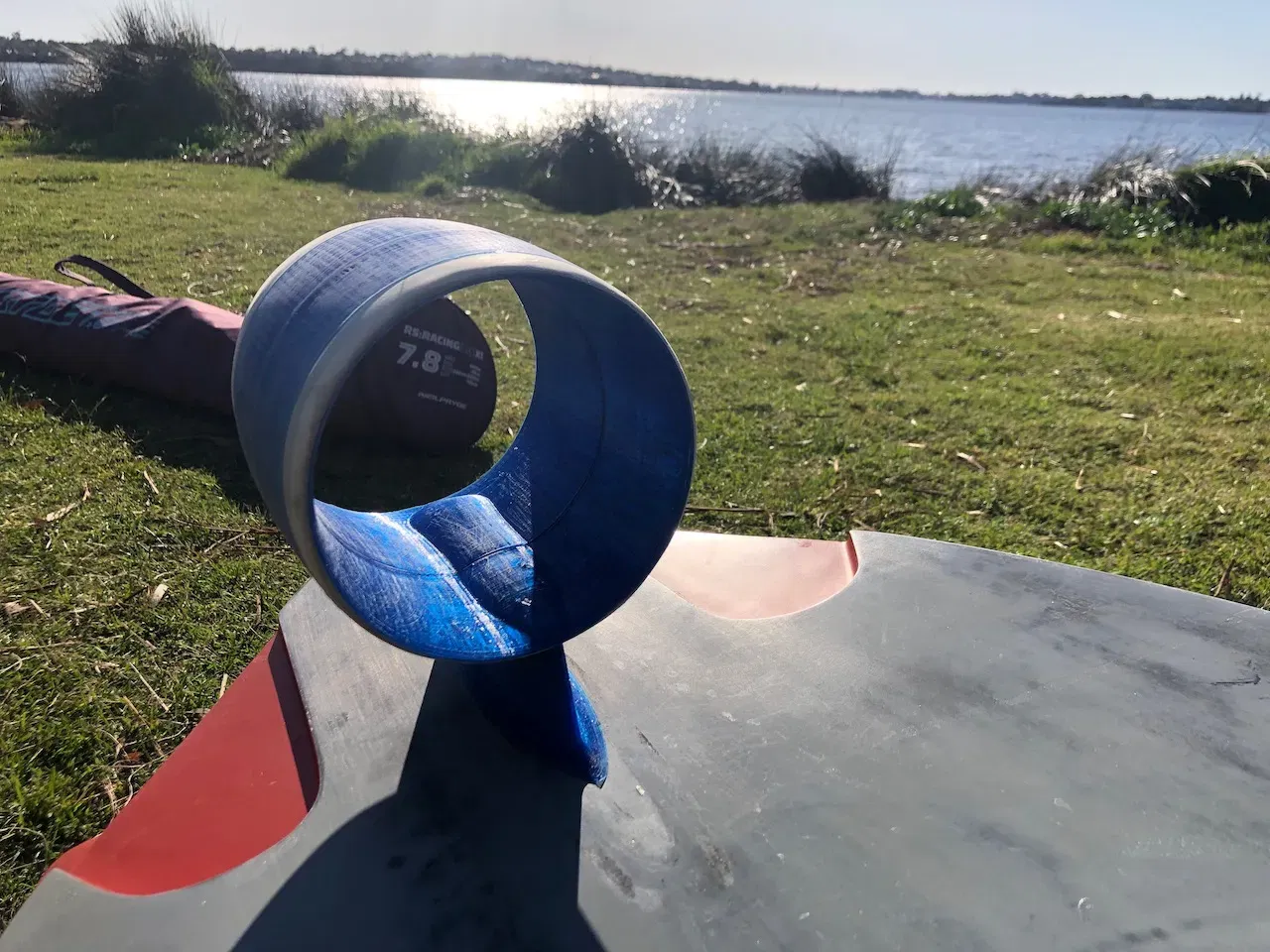 Fins hình vòng tròn lý thuyết nên cung cấp nhiều lực nâng hơn nhưng độ chìm thấp, vì vậy nên lý tưởng cho gió nhẹ/di chuyển nông. Hình phạt là tăng cường lực cản ở tốc độ cao. Dù fin dễ dàng hoạt động, nhưng lực cản rất lớn ở khoảng 20 knots. Tuy nhiên, tôi rất vui vì fin đã chịu được tải trọng của môn thể thao lướt ván buồm. Nó không được thiết kế để sử dụng lâu dài, chỉ để thử nghiệm ý tưởng. Tôi đang tải lên thiết kế ở đây để cho những ai quan tâm thấy cách nó được làm ra. Bạn có thể xem các thiết kế cải tiến khác bằng cách nhìn vào các mô hình tôi đã tải lên khác. Nó sử dụng một mảnh PVC 150mm, hình dáng cạnh dẫn và cạnh đào của PVC bằng máy mài băng. Đối với thép, tôi đã sử dụng tấm inox 1. 5mm, sau đó dán (Araldite) bản in 3D lên. Ý tưởng là các bu lông đều đưa bản in 3D vào trạng thái nén và làm cho nó mạnh hơn rất nhiều. Tôi đã in bằng PETG nhưng bạn chắc chắn có thể sử dụng các vật liệu mạnh hơn. Rất khuyến nghị thêm một hoặc nhiều lớp sợi thủy tinh trên phần hình vòng tròn để tăng độ bền.