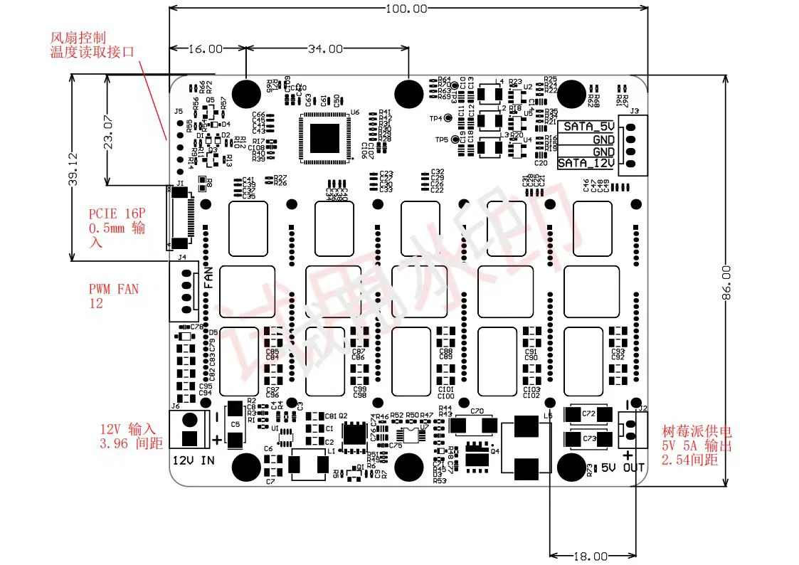 Case NAS cho Raspberry Pi 5 hỗ trợ 6 ổ 2.5" (tối đa dày 15mm), kích thước 94×140×130mm. Dùng quạt 60×60×10mm 4pin 12V. Backplane tích hợp PCIe to SATA, kết nối FPC gọn và dễ lắp.