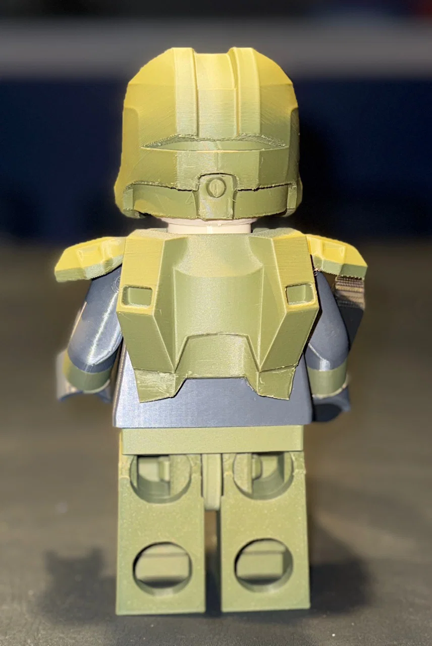 Bộ chi tiết để in và lắp ráp mô hình Halo Master Chief Brick MegaFigure ở tỉ lệ 5:1 (500%). Có đầy đủ file STL; kèm Bambu project (cần BambuStudio) để đặt hướng in và màu sơn tối ưu.