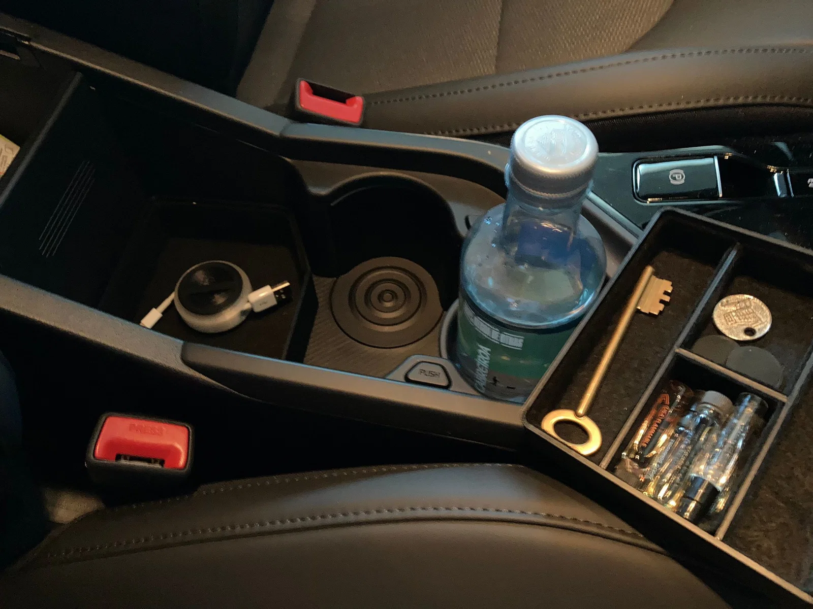 Sản phẩm này được thiết kế theo dạng module, cho phép bạn chia tách khu vực chứa đồ thành các ngăn nhỏ riêng biệt. Nhờ đó, những món đồ cá nhân như nước hoa mini, bật lửa, chìa khóa hay cáp sạc sẽ không còn bị trộn lẫn vào nhau. Điểm đặc biệt của thiết kế này là sự tinh tế trong việc tối ưu hóa hình dạng hộc để tay đặc trưng trên Kia Niro 2023, giúp khay nằm vừa khít, không bị xê dịch khi xe di chuyển.