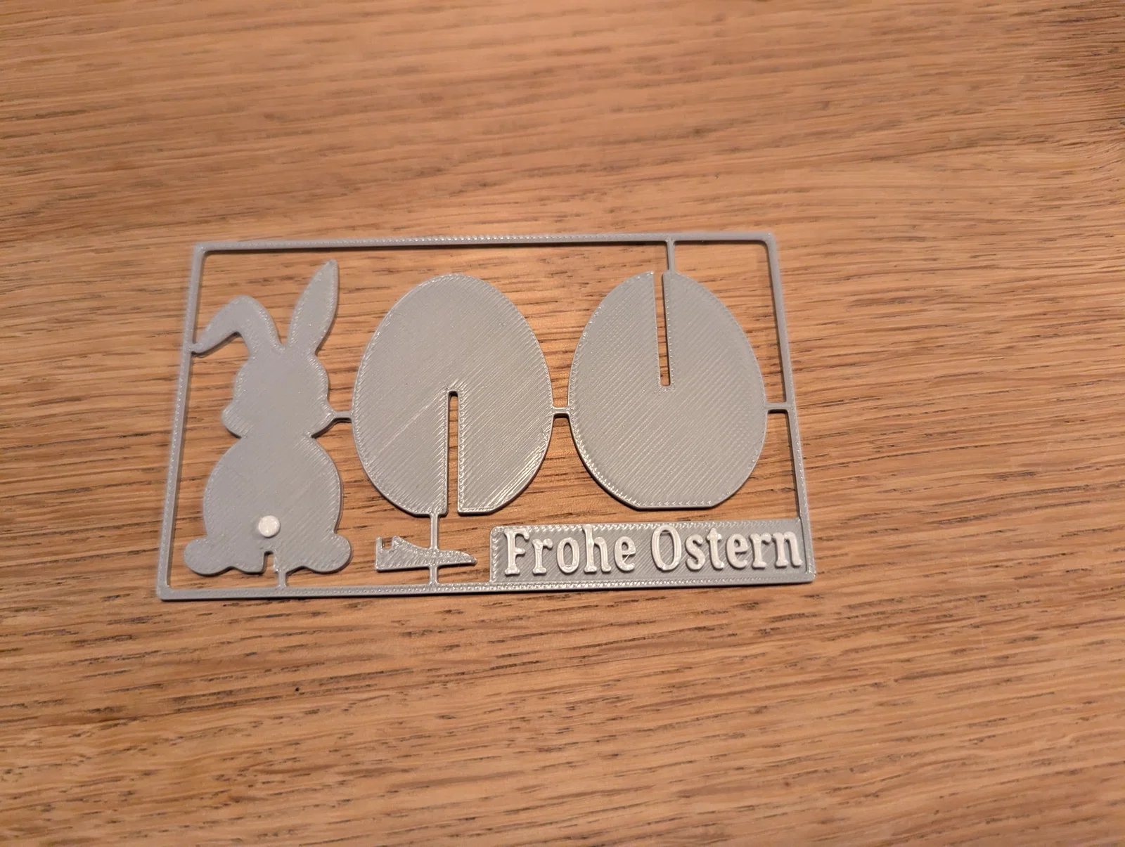 - Cài đặt in: Lớp in (layer height) lý tưởng nhất là 0.2mm hoặc thấp hơn để các chi tiết như chữ "Frohe Ostern" và đường viền của thỏ được sắc nét nhất.