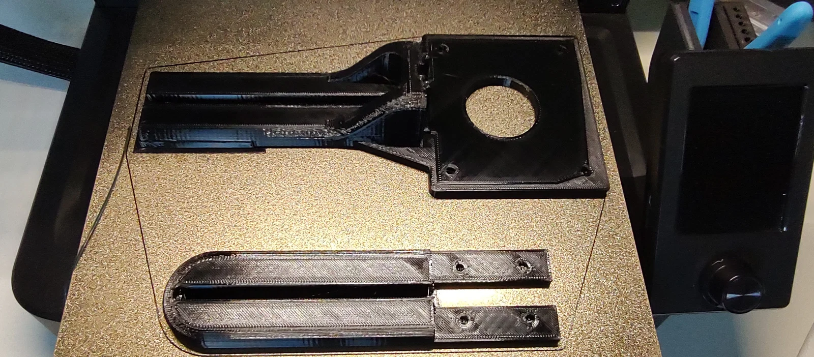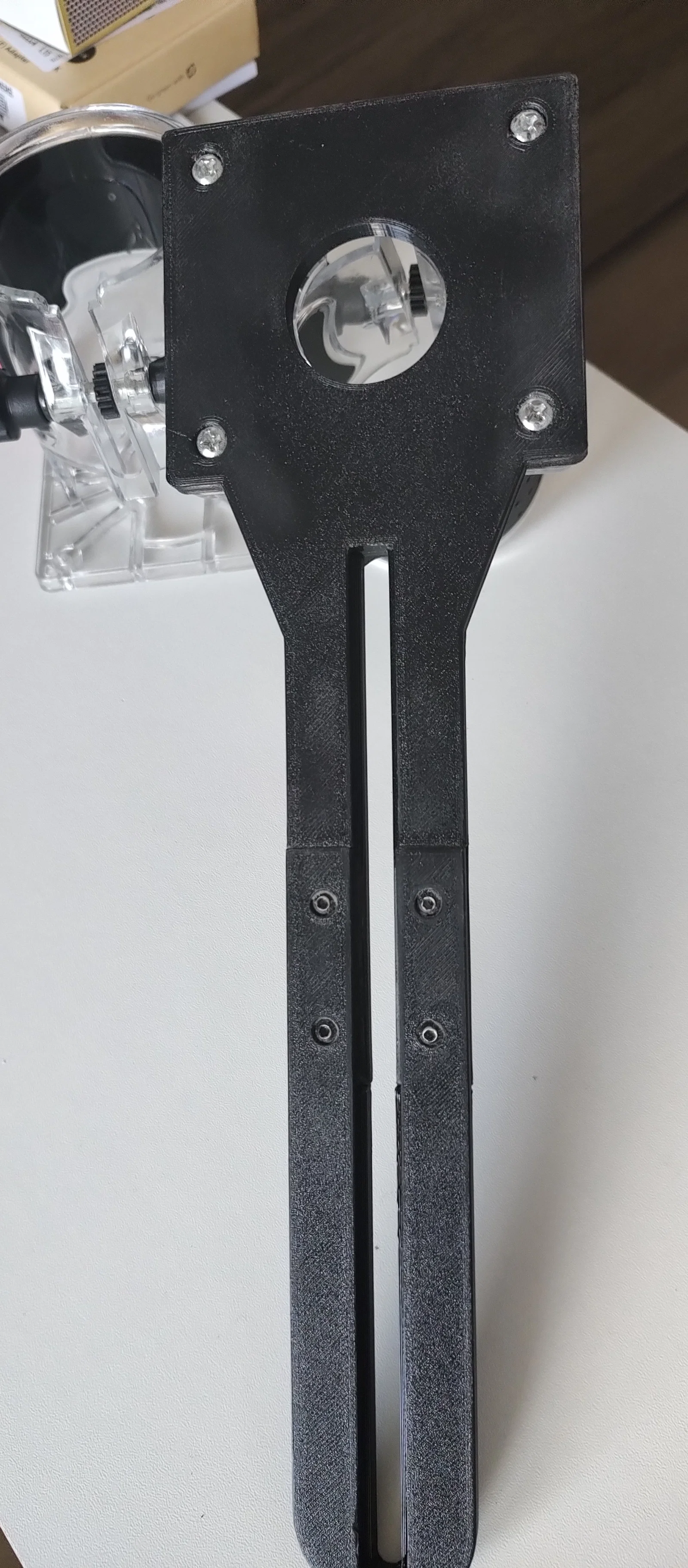Tôi đã chỉnh sửa đồ gá cho việc cắt theo đường tròn. Hai phiên bản: ngắn và dài. Vừa với bề mặt in 220x220, v.v. Liên kết bằng vít và đai ốc khía (knurled nuts), hoặc dán keo.