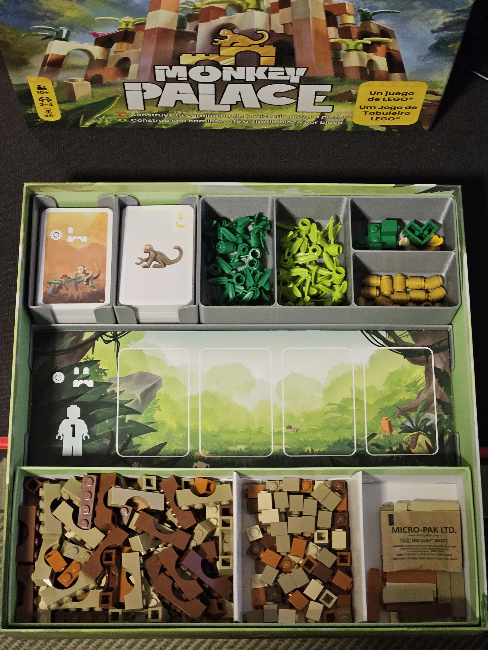 Bộ hộp organizer nhỏ dành cho board game Monkey Palace. In 2 khay thẻ và 1 cái cho mỗi thành phần còn lại; hỗ trợ thẻ có bọc sleeve. Lưu ý: không phù hợp để cất theo chiều dọc.