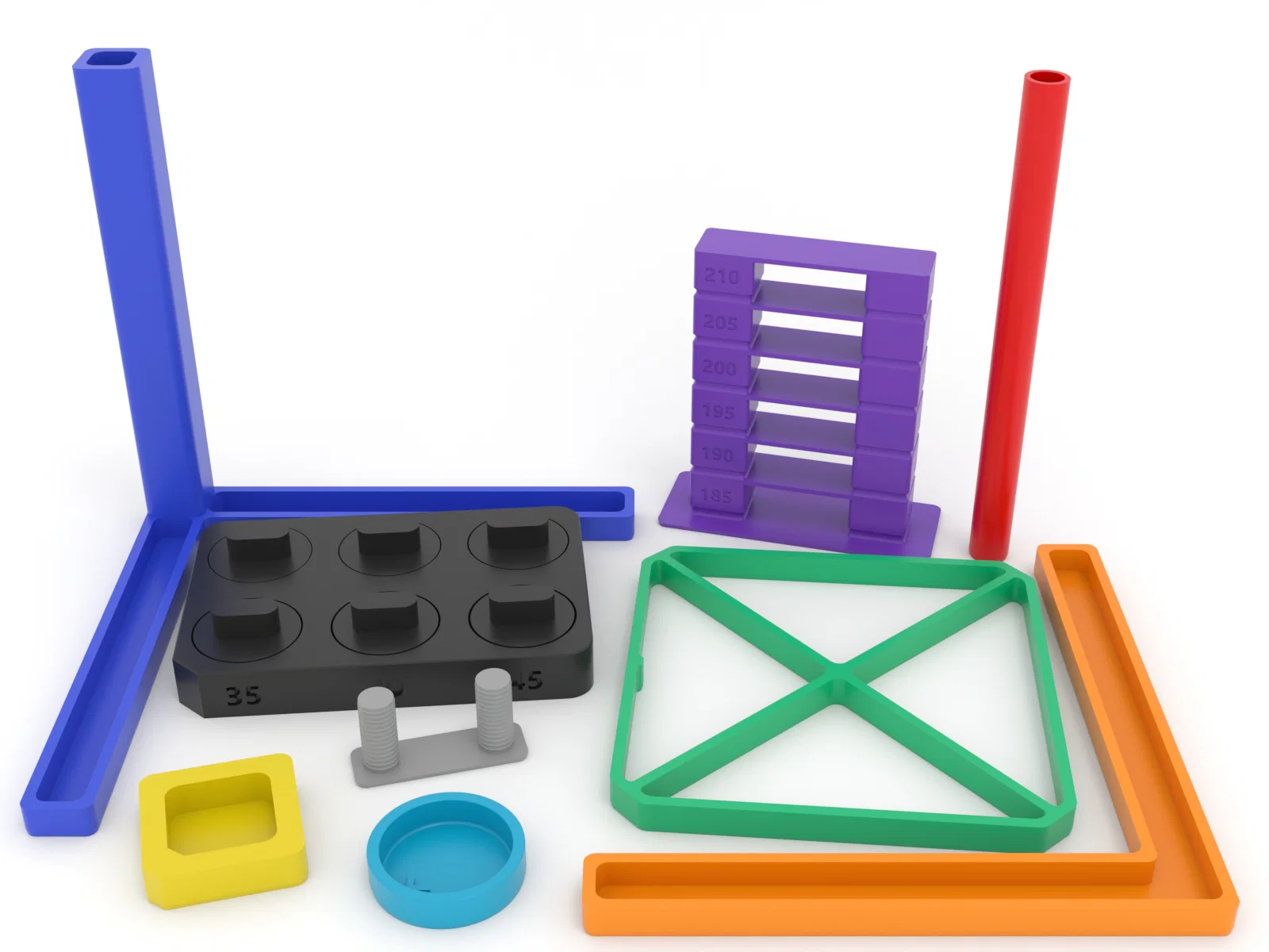 Mình thiết kế mấy món này để tiết kiệm thời gian và vật liệu trong giai đoạn calibration thuần túy. Mẫu càng lớn thì càng chính xác (hiển nhiên). Dù các góc bo tròn không nên ảnh hưởng tới đo đạc, nhưng jerk cài sai vẫn có thể làm lệch kết quả. Nếu chưa chắc, hãy đặt thước kẹp (caliper) theo đường chéo giữa hai vách mà không chạm vào góc (như trong hình). Một số mẫu có thêm dấu hiệu trực quan nhỏ để nhắc hướng đặt mặc định.