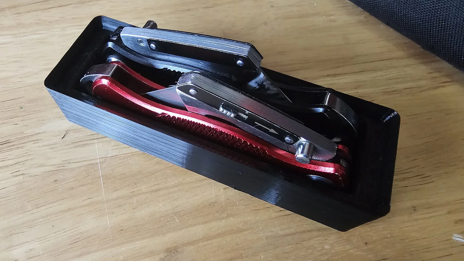 - Chất liệu in: Khuyên dùng nhựa PLA, PETG hoặc ABS để đảm bảo độ bền và độ cứng cho khay, giúp chịu được trọng lượng của dao kim loại.