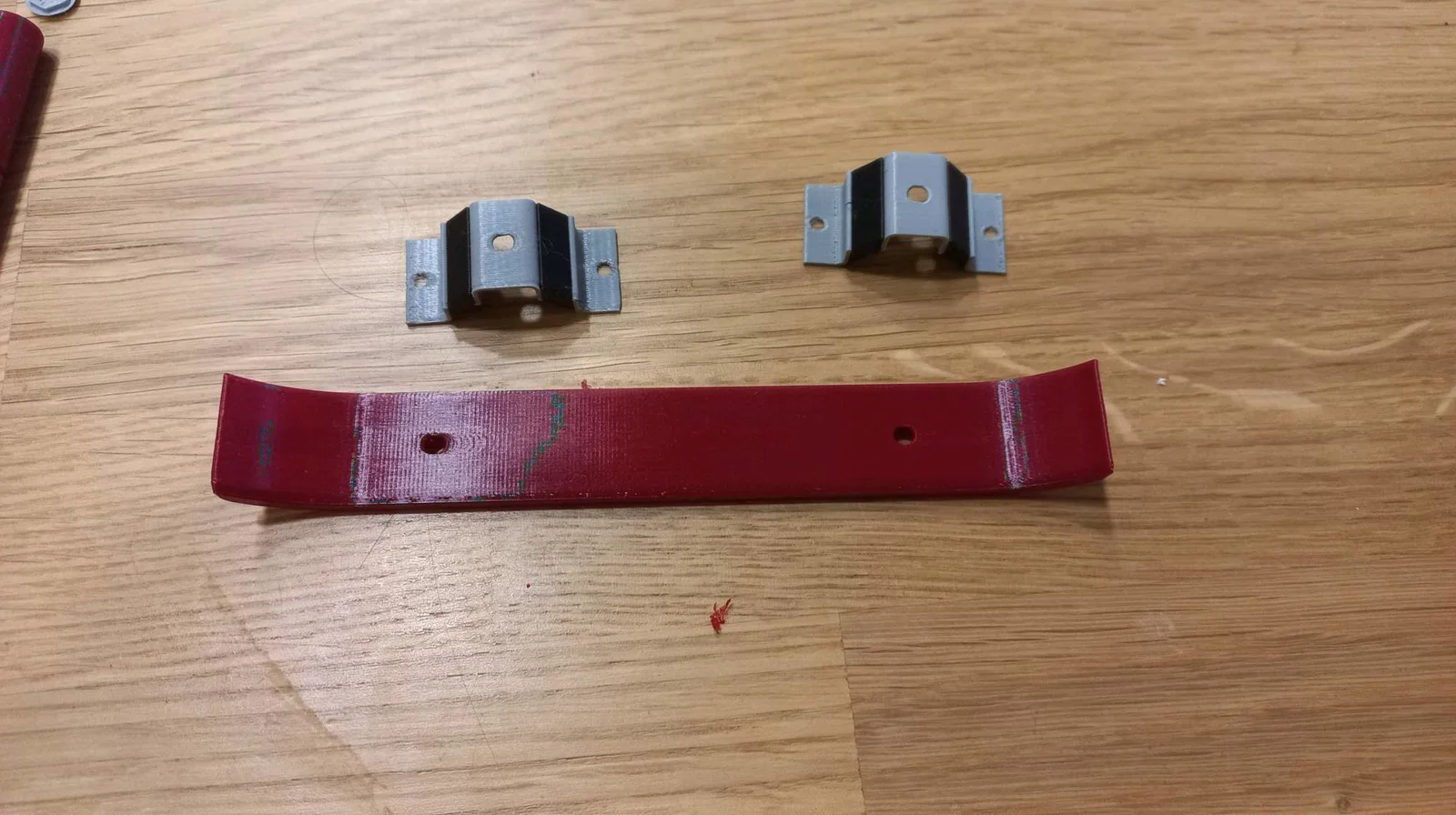 - front_catch - 2 cái, PLA đỏ, infill 100%, layer 0.15-0.2.