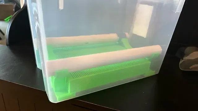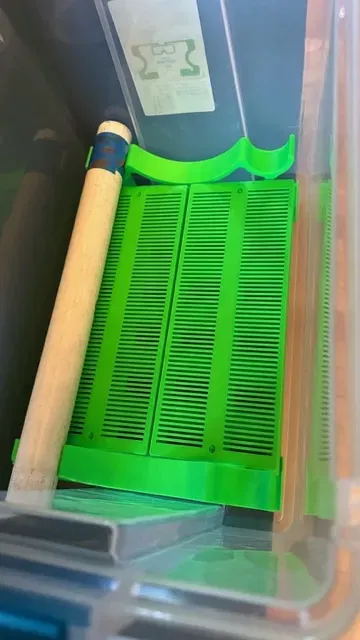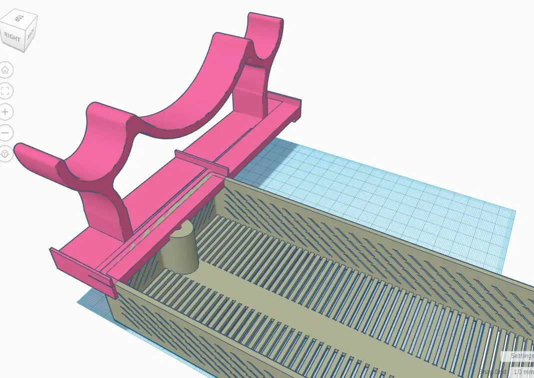 - DRYBOX-Base-PVC…stl - đây là giá đỡ pvc. Tôi đã mở rộng chân một chút để cho hộp silica có một nền tảng để nghỉ ở mỗi đầu của thùng Sterilite và thêm một vài cạnh để giữ các hộp ở vị trí. In 2 cái.
