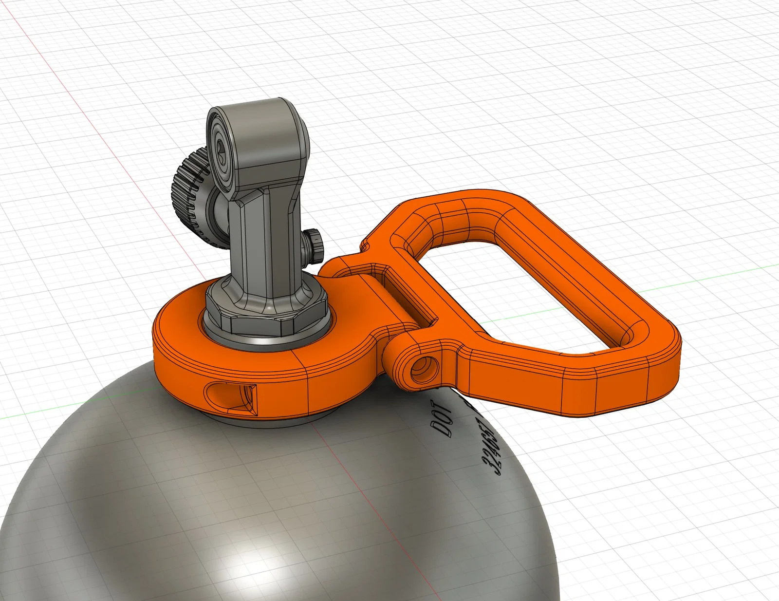 Tay xách này dùng ngàm kẹp cổ bình (neck clamp) có thể lắp mà không cần tháo valve, và đủ chắc cho mọi cỡ bình — miễn là bạn in đủ “trâu”.
