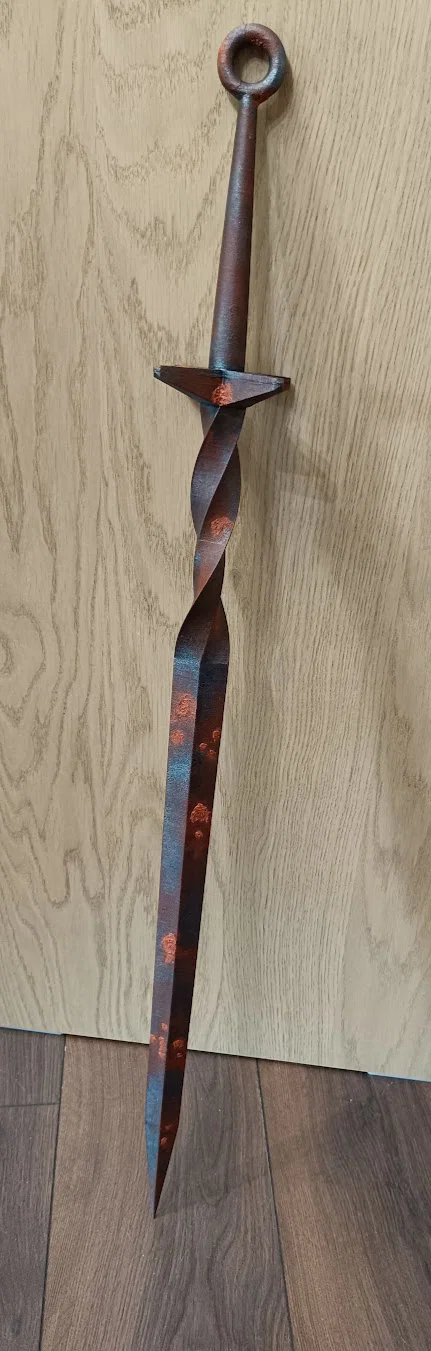 Bonfire sword từ Dark Souls, thiết kế bằng javascript với replicad, bản kích thước thật (không phải mini). Có bản update thêm lỗ để luồn rod (5mm/10mm). Phù hợp làm đạo cụ cosplay và in 3D.