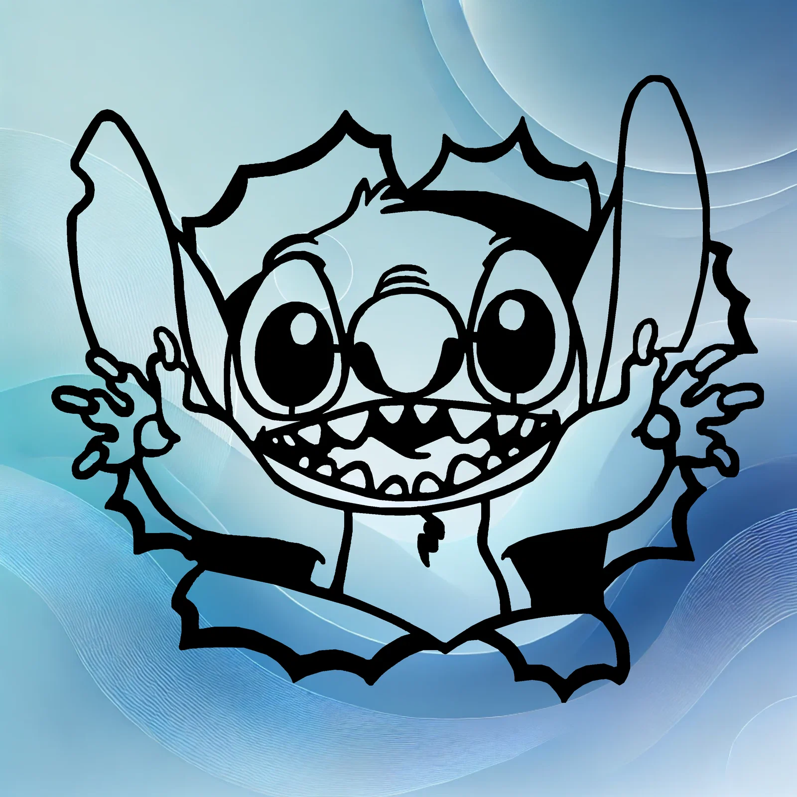 Mẫu Stitch Wall Art dạng silhouette 2D để treo tường, hợp cho fan Stitch và trang trí góc học tập/phòng ngủ. Kèm thông số in gợi ý: nozzle 0.4 mm, layer 0.25 mm, 3 perimeters, 4 top/bottom solid layers.