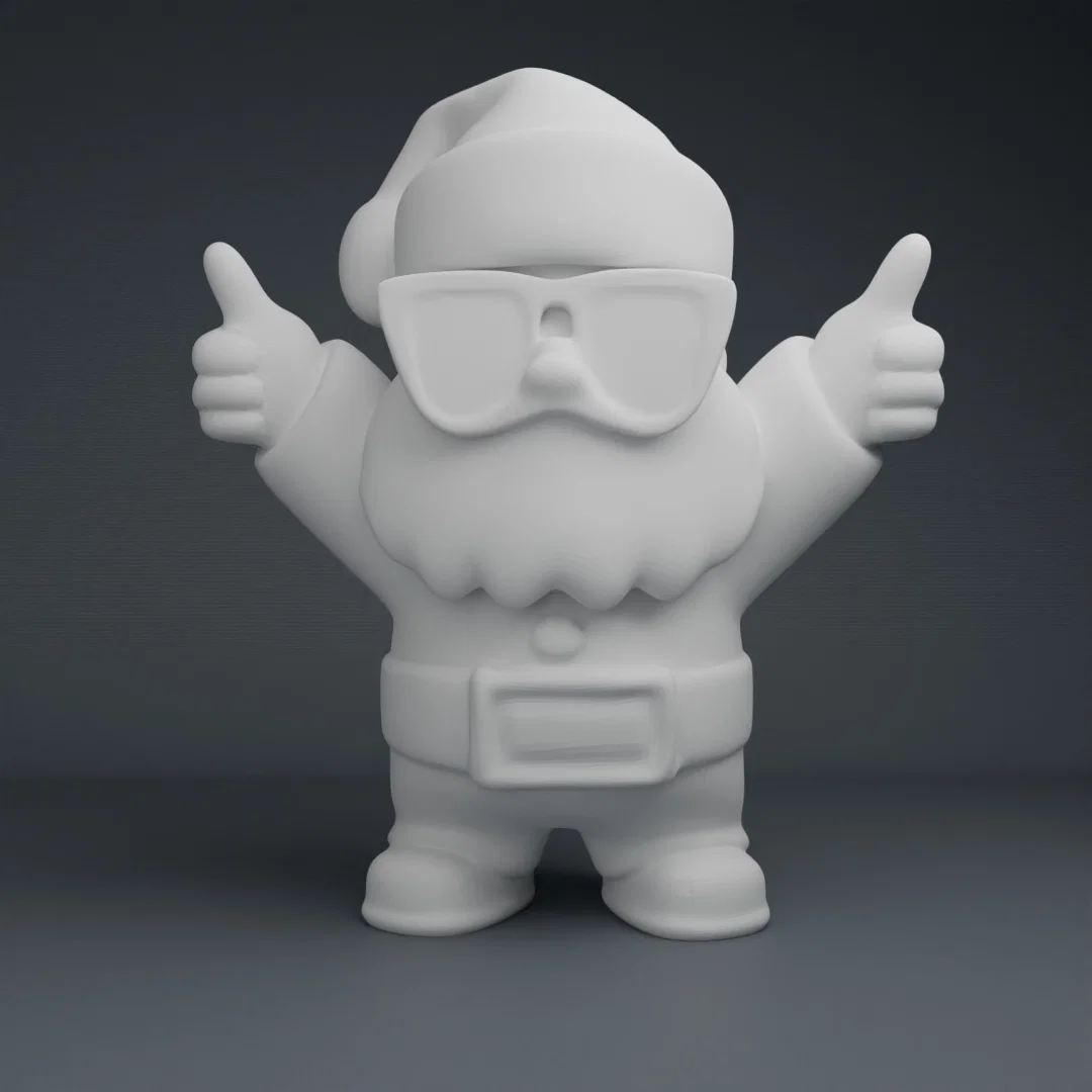 Mẫu 3D “Cool Santa Clause” – ông già Noel đeo kính mát, nhìn vừa ngầu vừa dễ thương. Hình trắng là model tải về, hình màu chỉ để gợi ý sơn. Mẫu được tối ưu để in và có thêm chi tiết; hãy chia sẻ thành phẩm của bạn nhé.