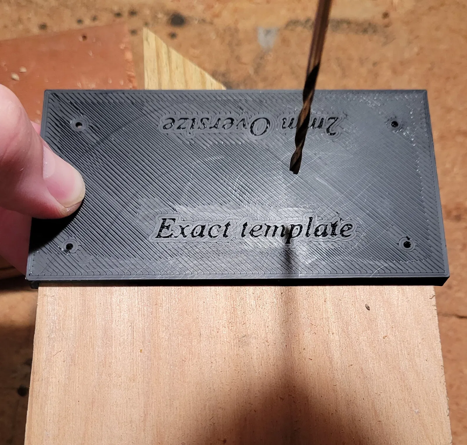 Một mẫu 2 mặt để căn chỉnh & khoảng cách cho các lỗ khoan của bạn nếu bạn đang sử dụng gỗ hoặc vật liệu không in khác cho các tấm.