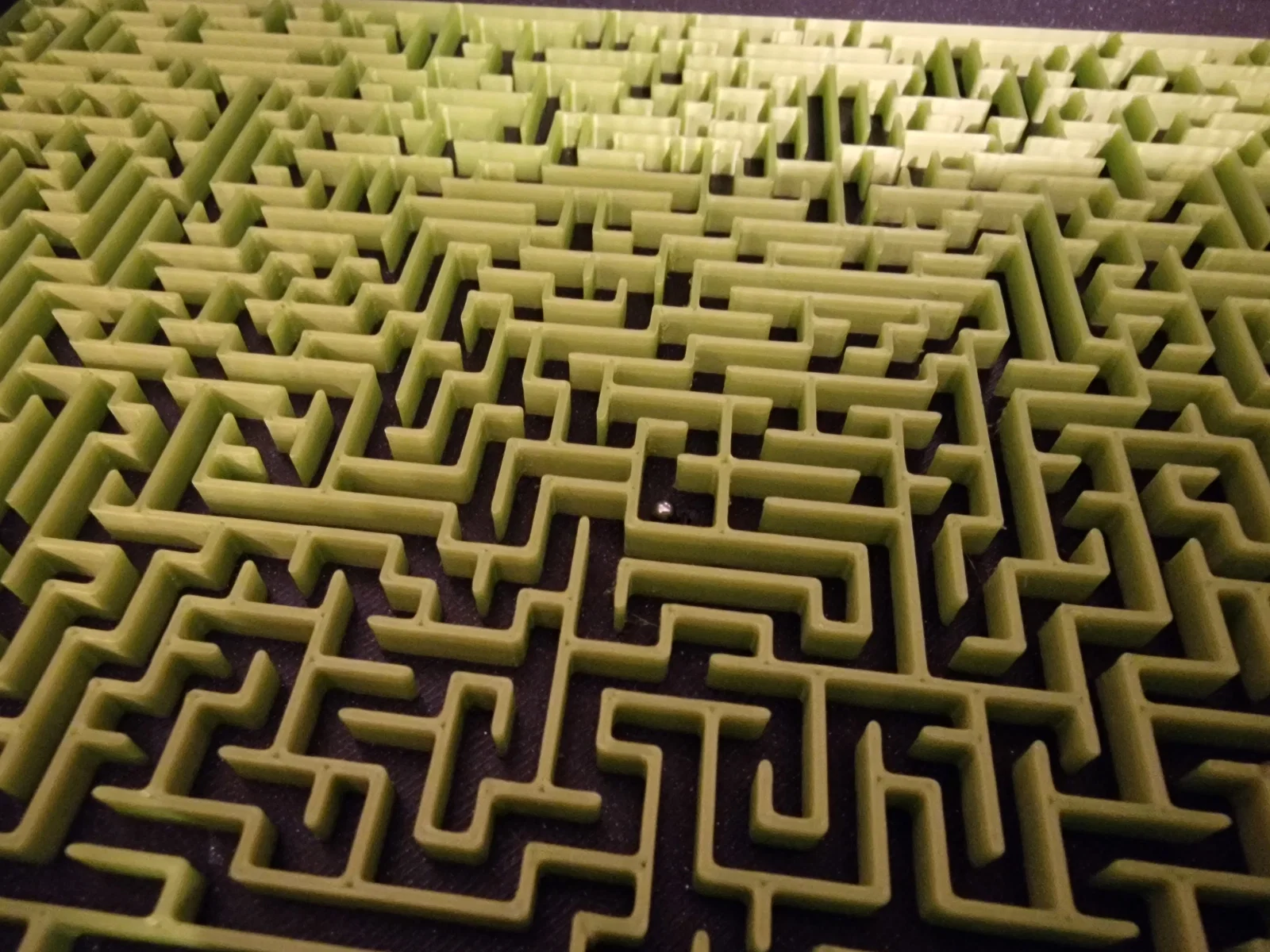Kích thước tổng của mê cung là 240x200x11mm. Có phần gờ cao 5mm để đặt kính hoặc nắp Plexiglas. Thiết kế này dùng với bi kim loại 3mm.