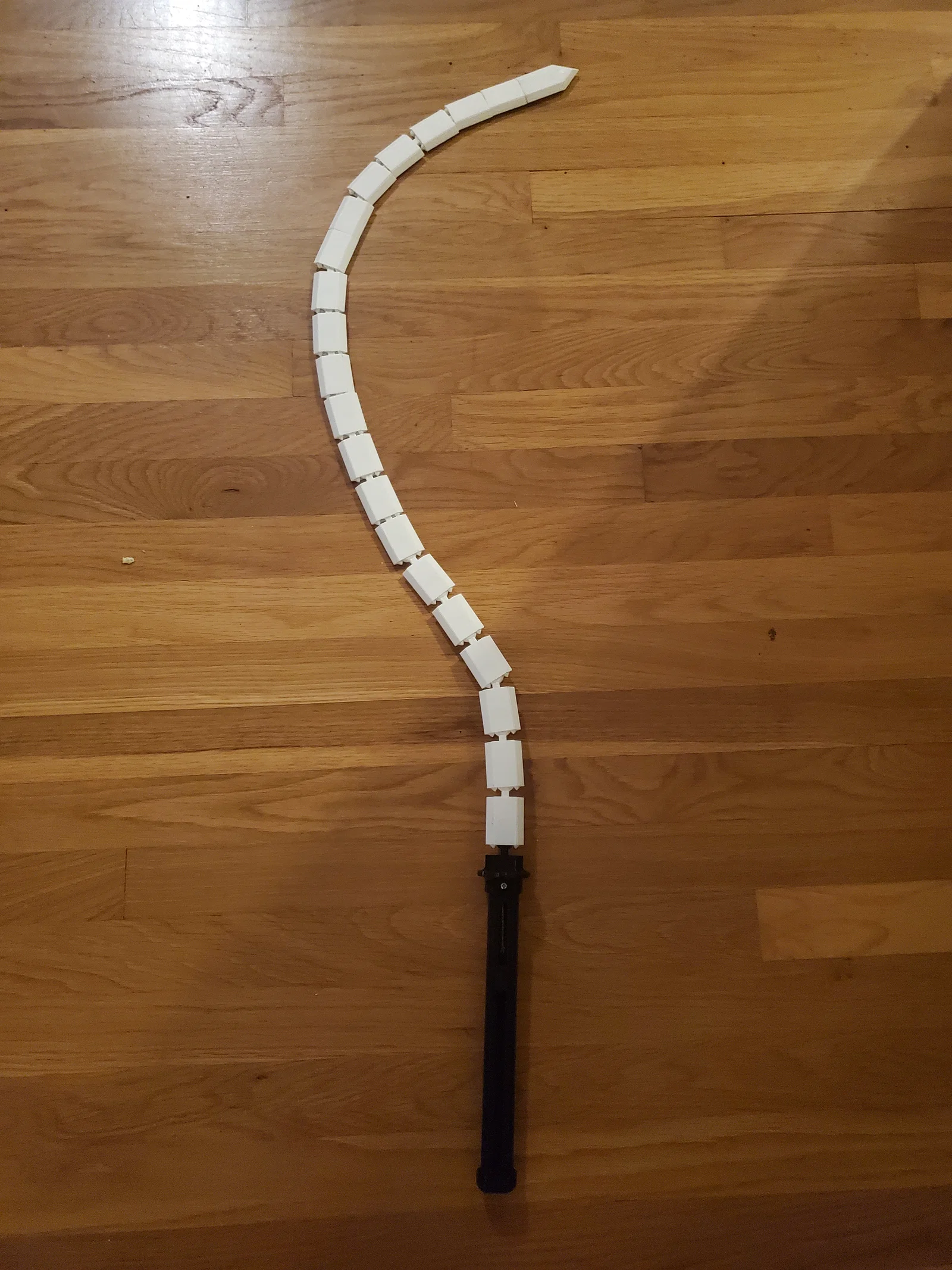 Razor Sword trong series sách Red Rising, có thể chuyển từ dạng roi (whip) sang dạng gân (ridged) nhờ nút trượt trên cán và cơ chế dây kéo. Gợi ý cách in các Links/Link Cover để ráp snap-fit bền hơn.