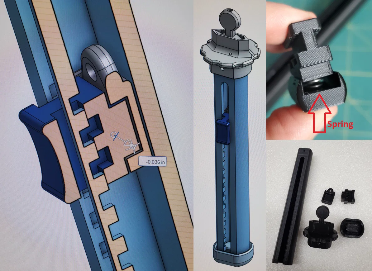 Có một sợi dây chạy dọc theo chiều dài lưỡi, một đầu gắn ở mũi, đầu còn lại gắn vào một nút có thể trượt lên xuống trên cán. Khi nhấn nút vào, các răng (teeth) bên trong ống cán sẽ nhả ra. Bạn trượt nút xuống dưới để siết dây, kéo thanh kiếm vào trạng thái ridged. Sau đó thả nút ra thì răng sẽ ăn lại, giữ cố định vị trí.