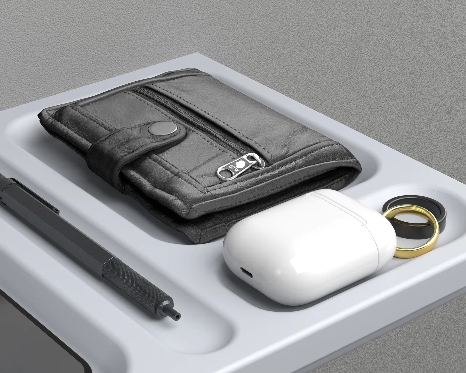 Mỗi tối lại phải đổ hết đồ trong túi lên cái bàn đầu giường bừa bộn? Rồi lúc tắt đèn lại loay hoay mò dây sạc điện thoại trong bóng tối? Cái kệ catch-all có tích hợp sạc không dây này có thể gắn ngay phía trên ổ điện, cho một cách gọn gàng, ít cồng kềnh để vừa sạc điện thoại vừa giữ đồ đạc ngăn nắp.