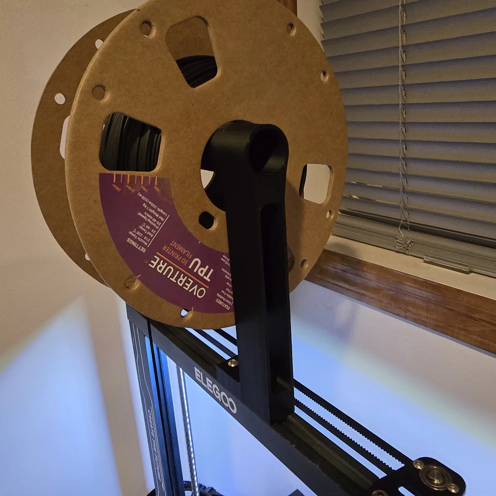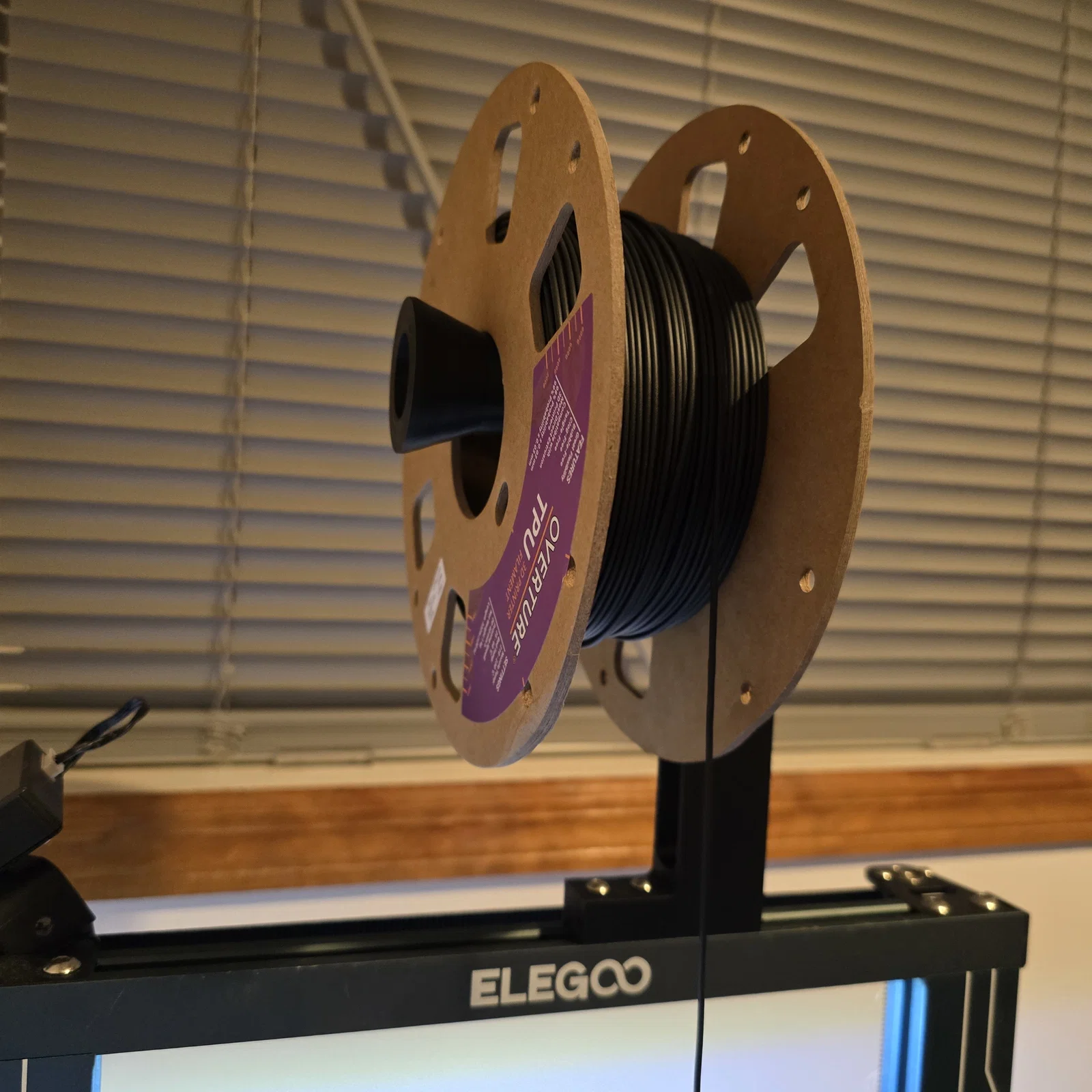 Giá đỡ cuộn dựng thẳng cho Elegoo Neptune 3/4 Pro/Max/Plus, giúp in TPU ổn hơn bằng cách giảm drag do tay đỡ zin và runout sensor. In 1 mảnh, không cần thêm hardware, tái dùng bu-lông zin.