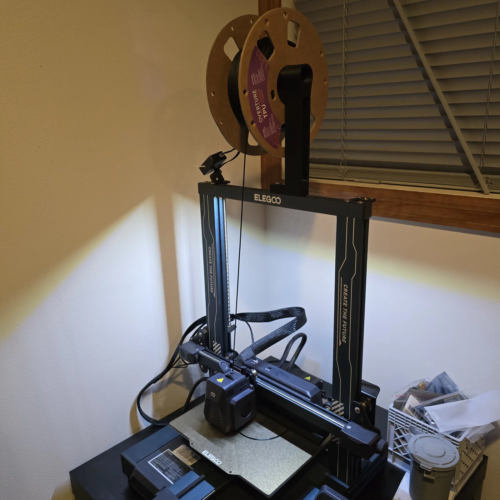 Có thể nó cũng hợp với một số máy Neptune 3 và 4 đời cũ có kiểu thanh rail trên nóc theo dạng cũ. Mình thấy Elegoo gần đây có đổi thiết kế, mấy máy đó giờ phần nóc bằng nhựa. Neptune 3 Max và 3 Plus có vẻ vẫn dùng rail kim loại phía trên nên spool holder này sẽ dùng được.