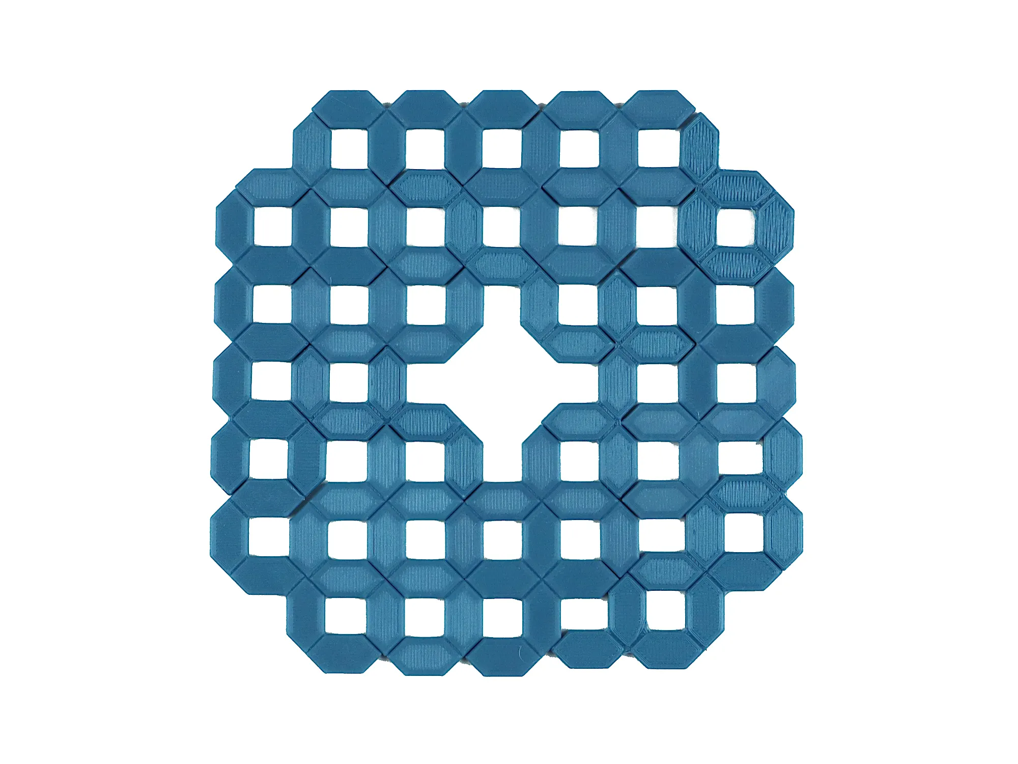 Bài Đố Trò chơi bao gồm hộp, nắp và 20 mảnh ghép. Nắp có một chỗ nhô nhỏ ở bên hông để khớp vào hộp. Các mảnh ghép có thể sử dụng ở cả hai mặt. Mặc dù có hơn một triệu giải pháp khác nhau (không tính các giải pháp đối xứng), nhưng bài đố không dễ dàng để giải. #### Mẹo In 3D Kích thước của nắp trượt là rất quan trọng. Nếu nó quá hẹp, các chỗ nhô trên nắp sẽ không khớp vào vị trí. Nếu nó quá rộng, nắp thường vẫn có thể được chèn vào, nhưng sẽ trở nên khó mở.