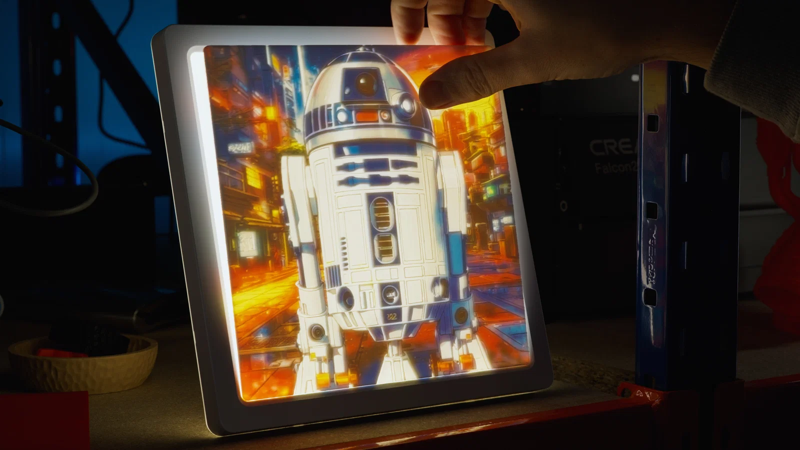 Trong lúc tìm một khung LED “chuẩn bài” để làm lithophane, mình tình cờ thấy một loại đèn hành lang có mấy tính năng khá hữu ích. Đèn LED này có thể dim, chỉnh nhiệt độ màu, và có thể gắn kèm phích Schuko. Với remote đi kèm, bạn có thể bật/tắt panel (“Aus”/“Ein”), hoặc cài để đèn tự bật bằng cảm biến chuyển động hoặc cảm biến độ sáng tích hợp.