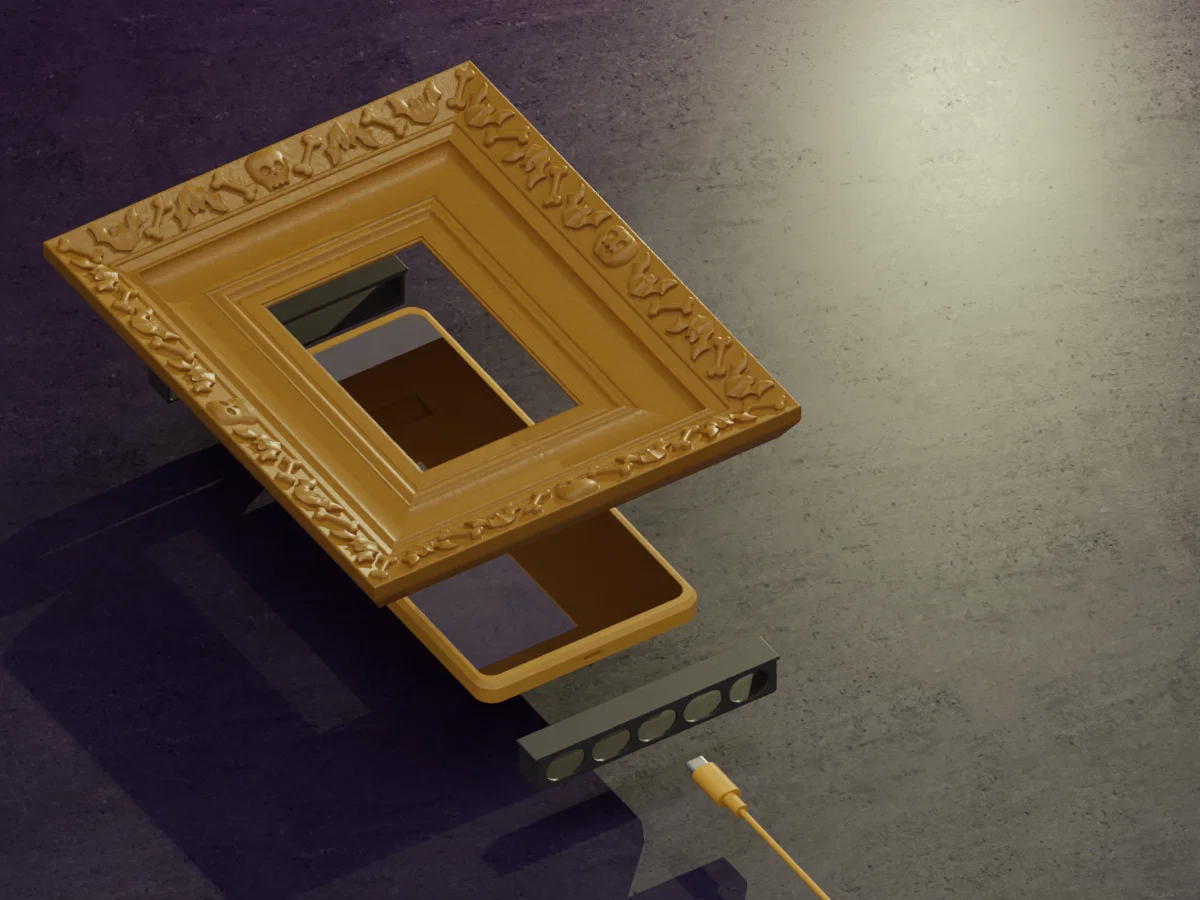 Lưu ý rằng phần khung sẽ che mất một phần màn hình. Điều này là do các loại khung ảnh truyền thống thường có tỷ lệ 3:4 hoặc tương đương. Nếu mình làm đúng tỷ lệ của điện thoại hiện đại thì khung nhìn sẽ không còn chân thực nữa, hơn nữa nó sẽ quá to và không vừa khổ in. Thiết kế này hiện đã vừa vặn hoàn hảo với khổ in của máy MINI+. Các bộ phận giá đỡ điện thoại là loại đa năng, phù hợp cho các thiết bị có kích thước khoảng 75 x 155 x 9,5 mm. Mình đã thử nghiệm thành công với dòng S23.