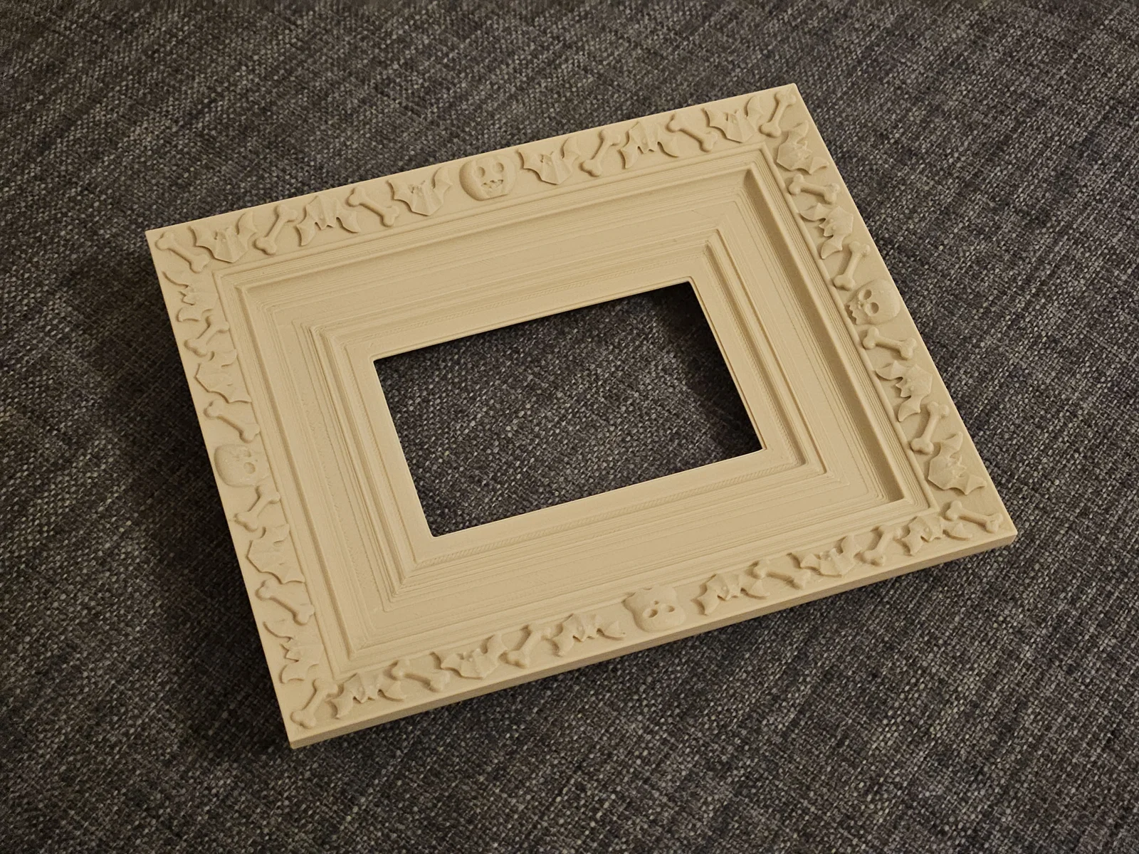 Chiếc khung ảnh phong cách cổ điển với các họa tiết Halloween cực chất. Không chỉ dùng làm khung ảnh, đây còn là món đồ độc đáo để troll bạn bè. Thiết kế tối ưu, phù hợp cho các dòng điện thoại có kích thước khoảng 75 x 155 x 9,5 mm và vừa vặn với hầu hết các khổ in 3D phổ biến.