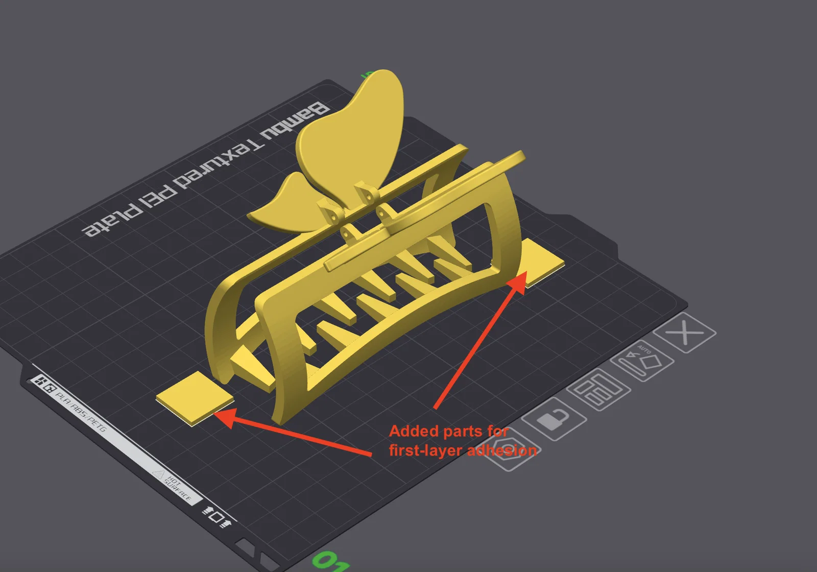Bạn nên in cùng hướng (orientation) như hình để che các vết/khuyết điểm do support để lại khi kẹp đang được sử dụng.
