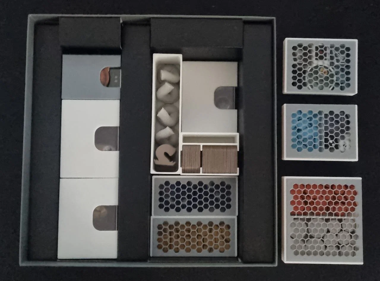 · player_tokensX4.stl: Khay insert cho token người chơi (16 cubes + 2 discs + 3 spies + 3 control markers + 3 agents + combat marker). * cần in 4 cái._