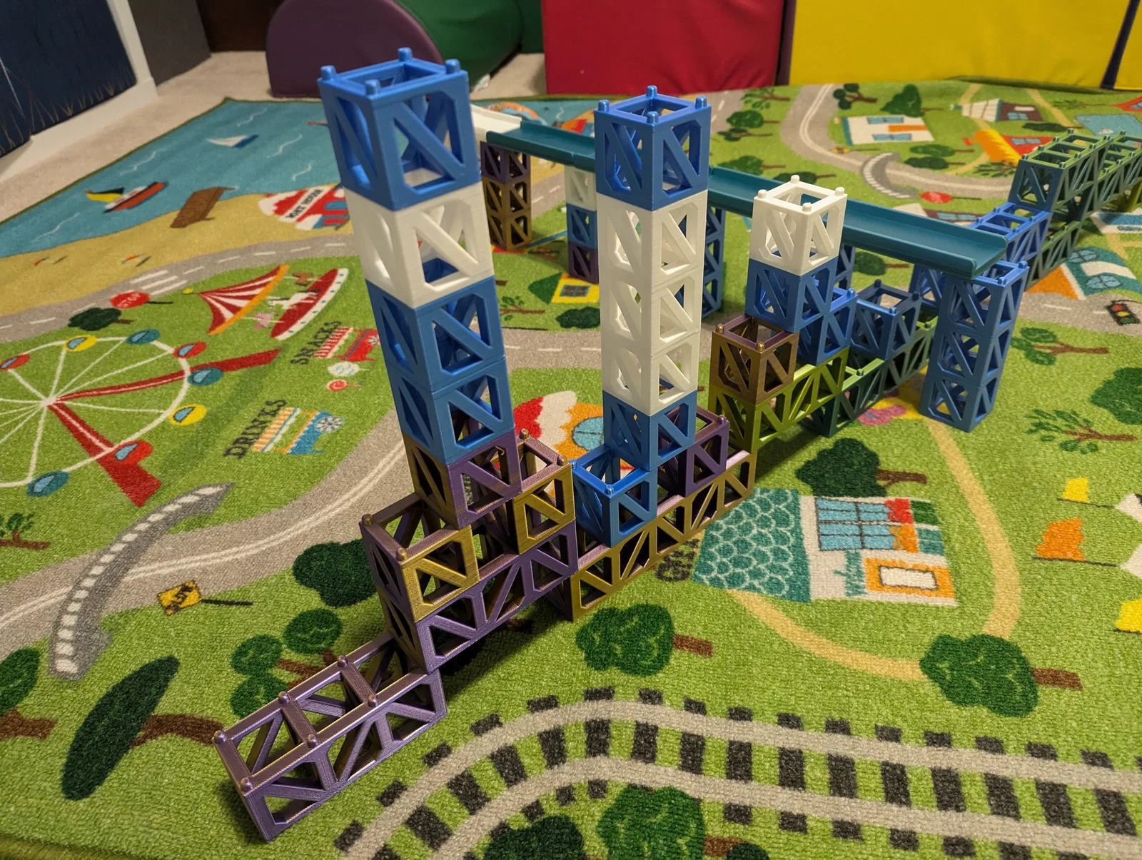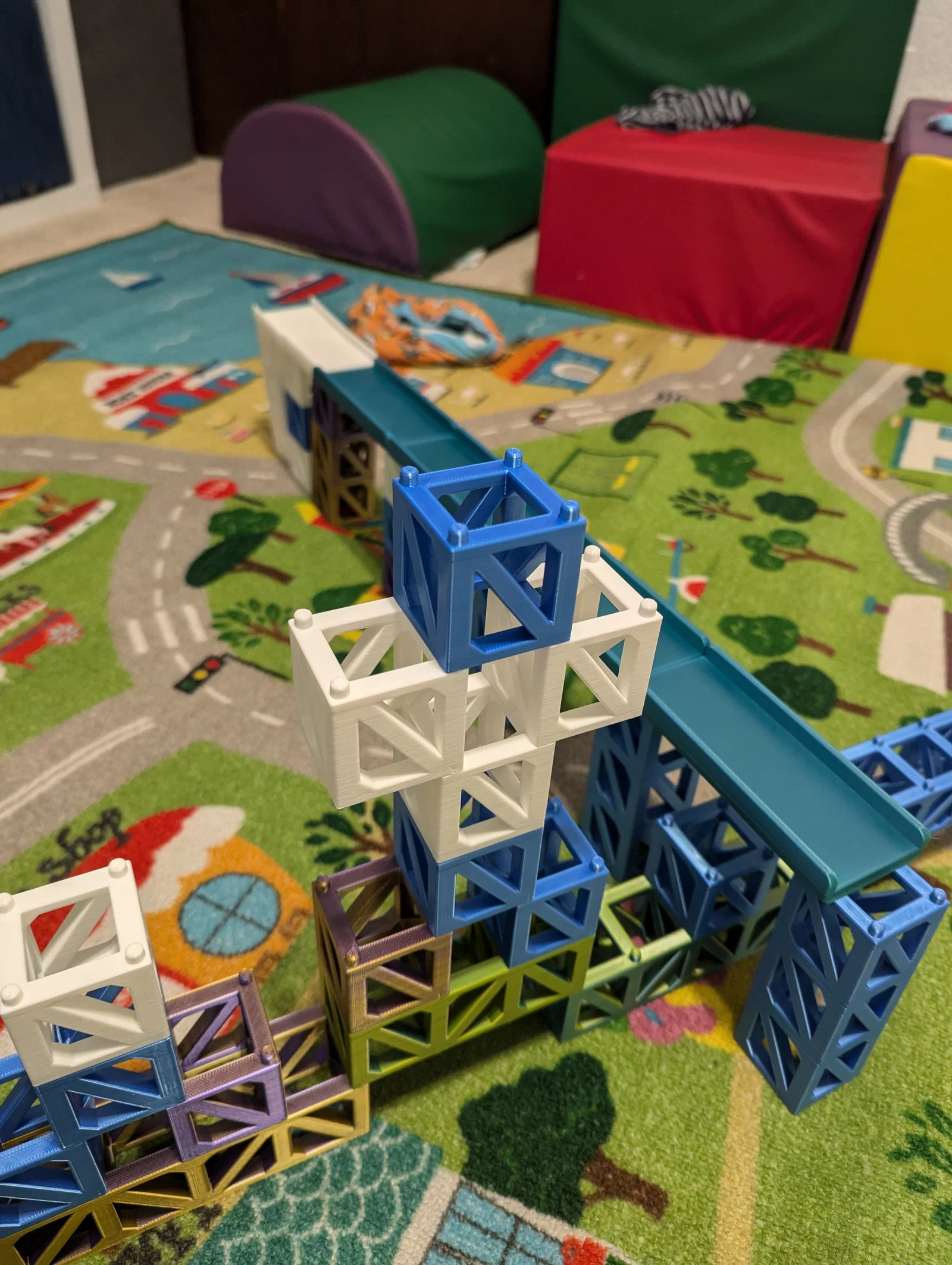 Bộ Stacking Block Toys gồm nhiều khối xếp chồng khóa với nhau, có cả mảnh đường vừa cho xe cỡ Matchbox. In không cần support, có thể giảm setting để tiết kiệm vật liệu mà vẫn chắc chắn; lưu ý pin nên để 100% infill.