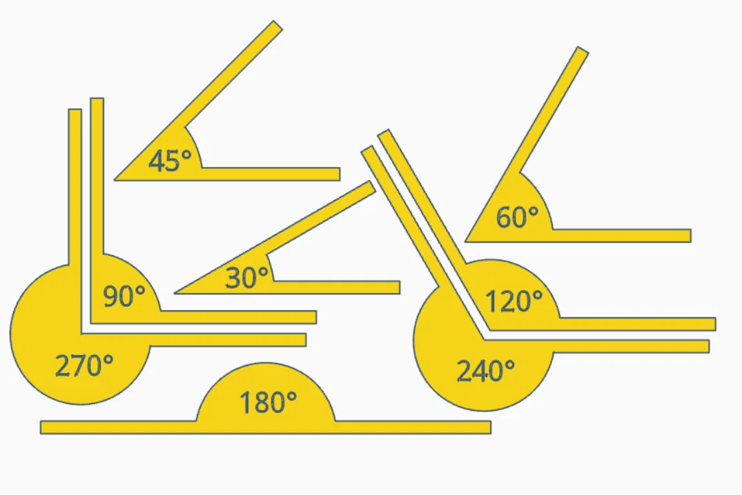 Mình tình cờ thấy một mẫu 3d do stigberg làm, in thử rồi đưa cho một đồng nghiệp là giáo viên Toán xem. Cô ấy thích lắm và muốn dùng trong lớp, nhưng có góp ý là đang thiếu góc phản (reflex angle). Để bộ này đầy đủ hơn, mình đã thêm các góc 240° và 270°.