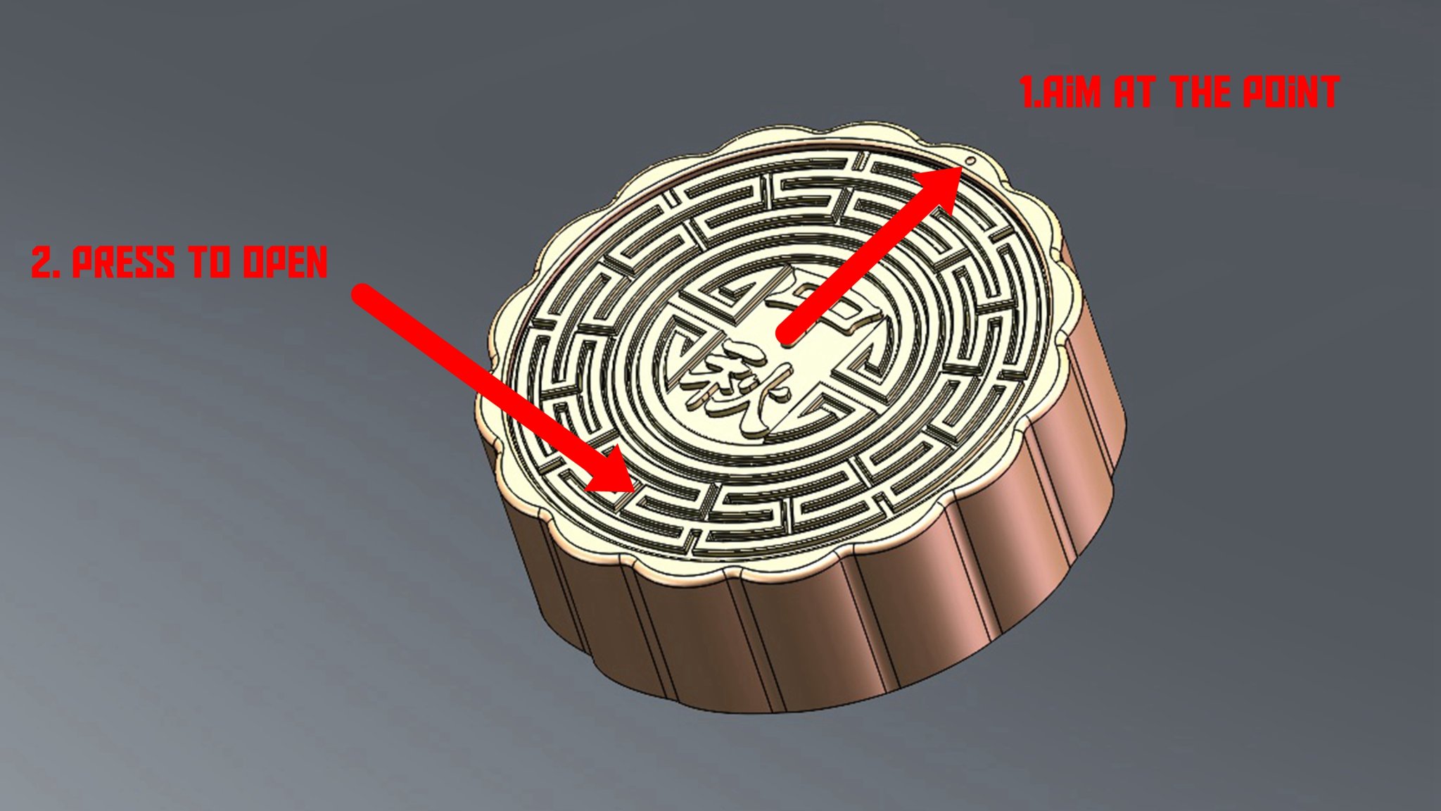 Nắp hộp có thể được xoay đến một góc cụ thể, và bằng cách nhấn vào phần đuôi của nắp hộp, nắp có thể được nâng lên, cho phép bạn mở hộp.