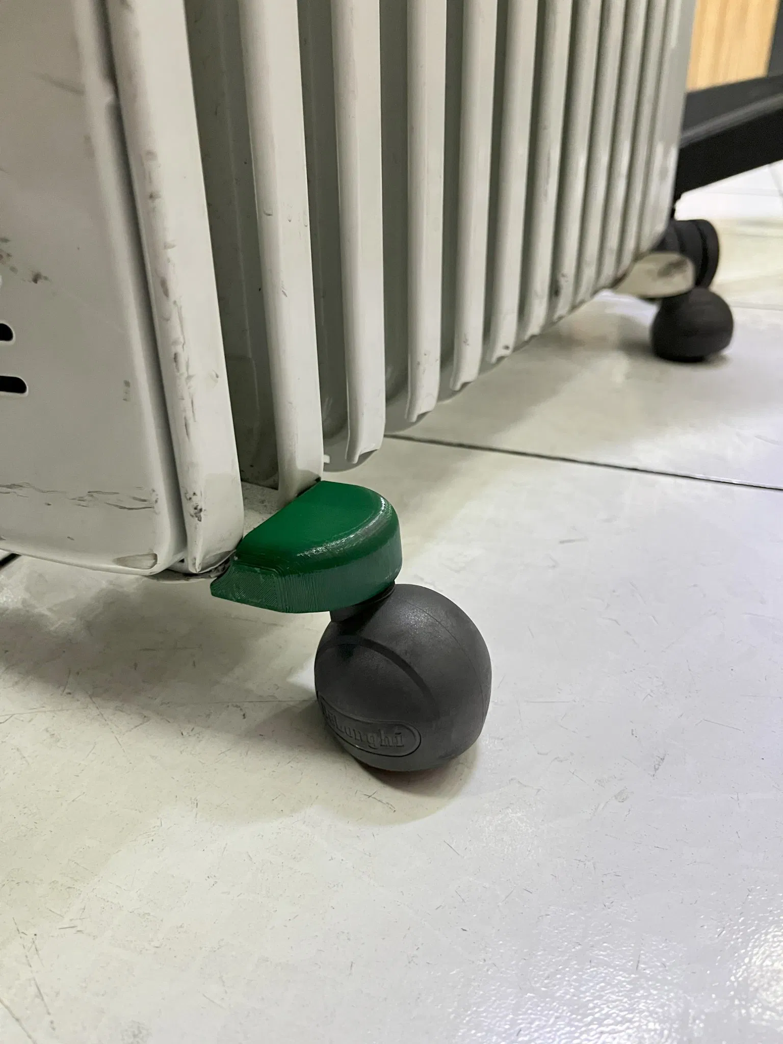 Chân của bộ tản nhiệt không thể chịu được chúng tôi ngồi lên nữa để làm ấm vào những ngày rất lạnh và đã bị gãy. Sau đó, vì bộ tản nhiệt không đứng thẳng và chúng tôi không thể di chuyển nó dễ dàng, chúng tôi đã phải tìm một cái mới để thay thế chân bị gãy. Thay vì tìm kiếm phụ tùng trên internet, tôi đã thiết kế một bộ phận tương tự như bộ phận bị gãy và sản xuất nó trên máy in 3D. Tôi đã tháo bánh xe còn tốt ra và thay thế bằng bộ phận nhựa mới, và nó vẫn chắc chắn như trước.