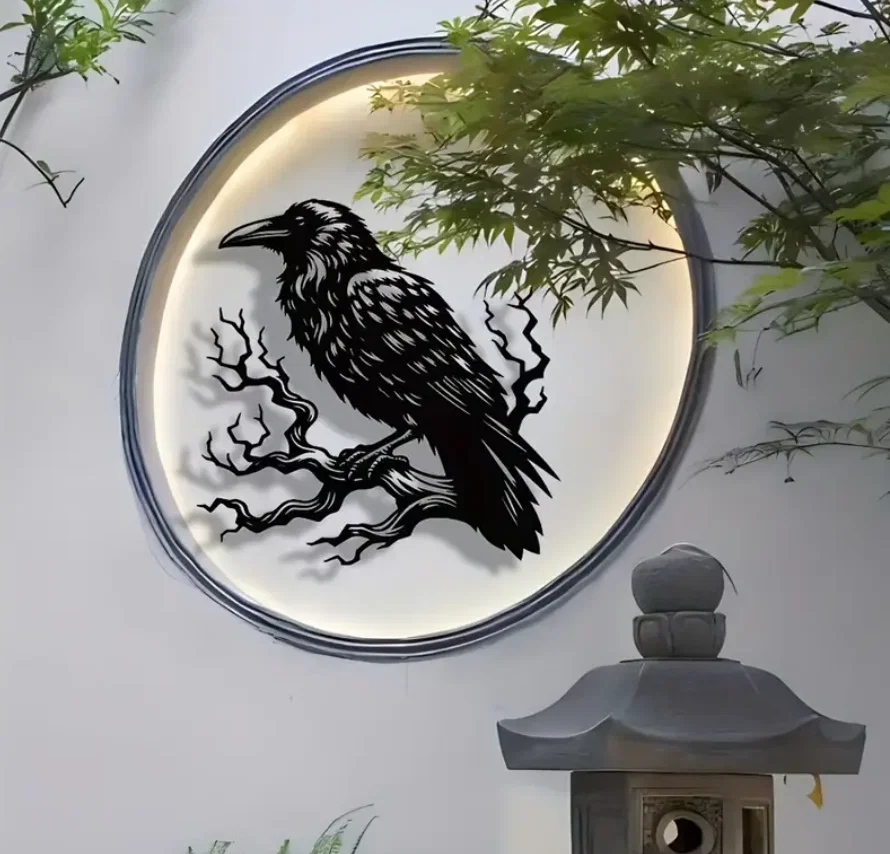 Sản phẩm này được thiết kế để treo tường, rất thích hợp để trang trí trong phòng khách, phòng đọc sách hoặc không gian sân vườn có mái che. Hình ảnh chú quạ đen đậu vững chãi trên cành cây khô mang lại cảm giác tĩnh lặng, trầm mặc nhưng vô cùng cuốn hút. Khi bạn lắp đặt kèm với hệ thống đèn LED hắt sáng xung quanh, hiệu ứng thị giác mà nó tạo ra sẽ biến bức tường trống trải trở nên sống động và có chiều sâu nghệ thuật hơn hẳn.