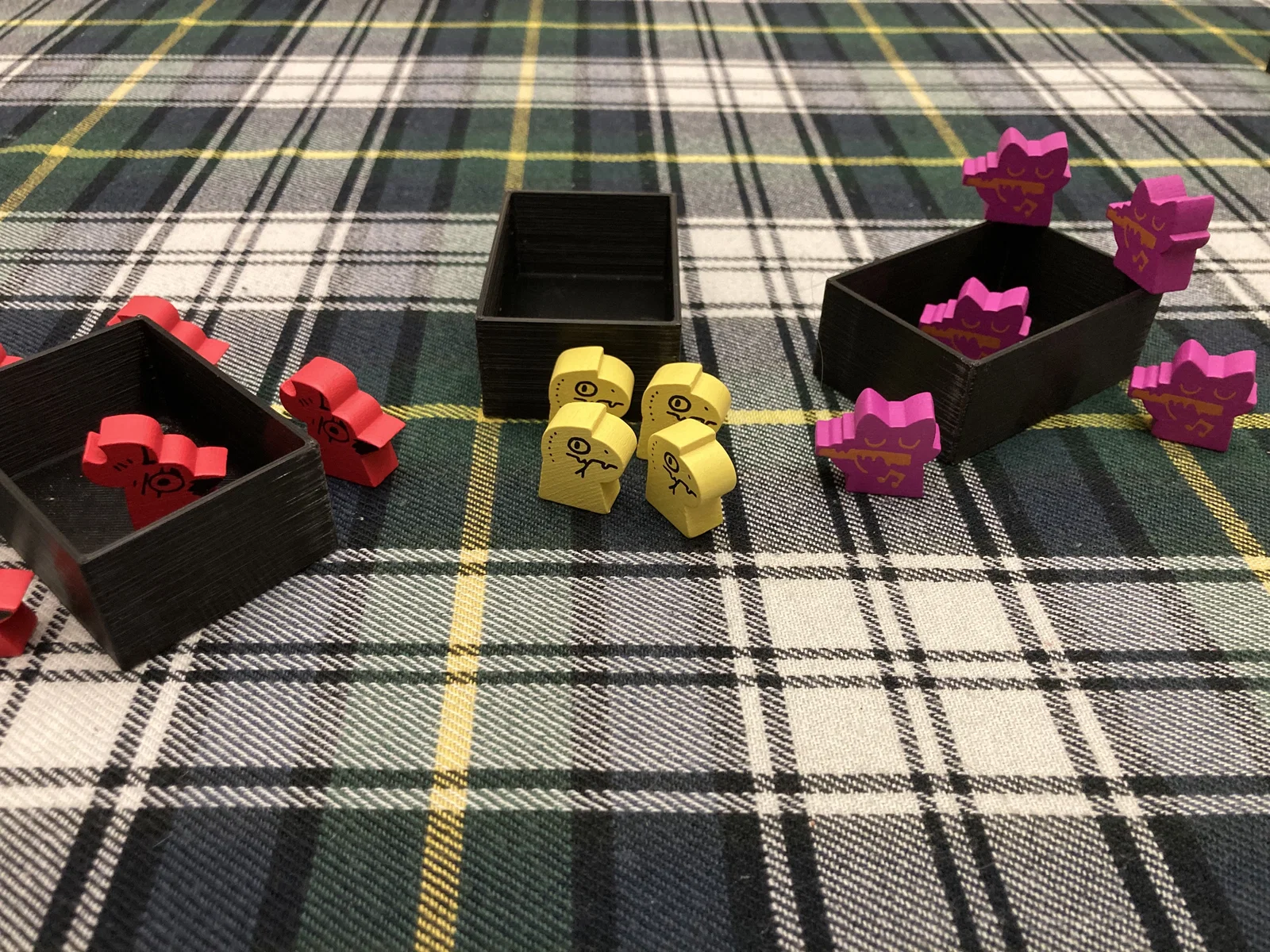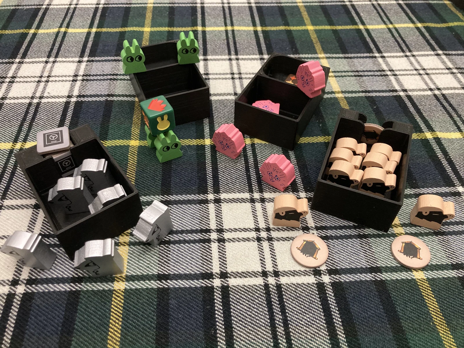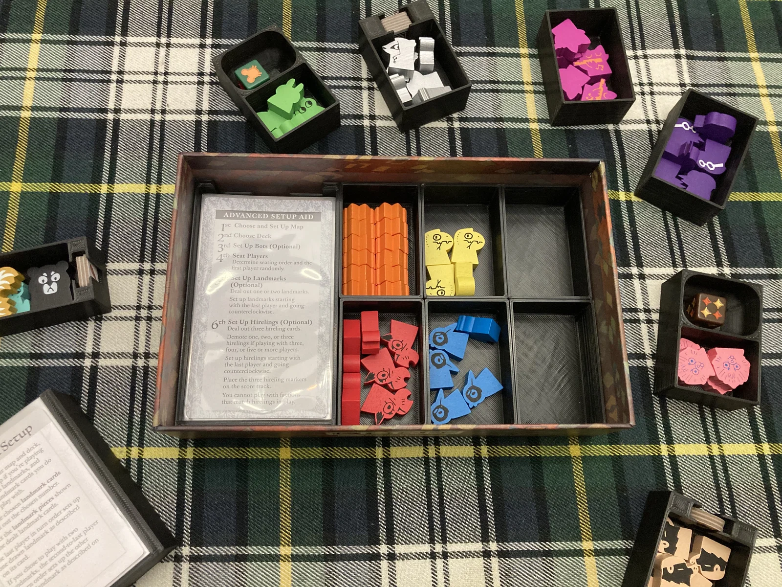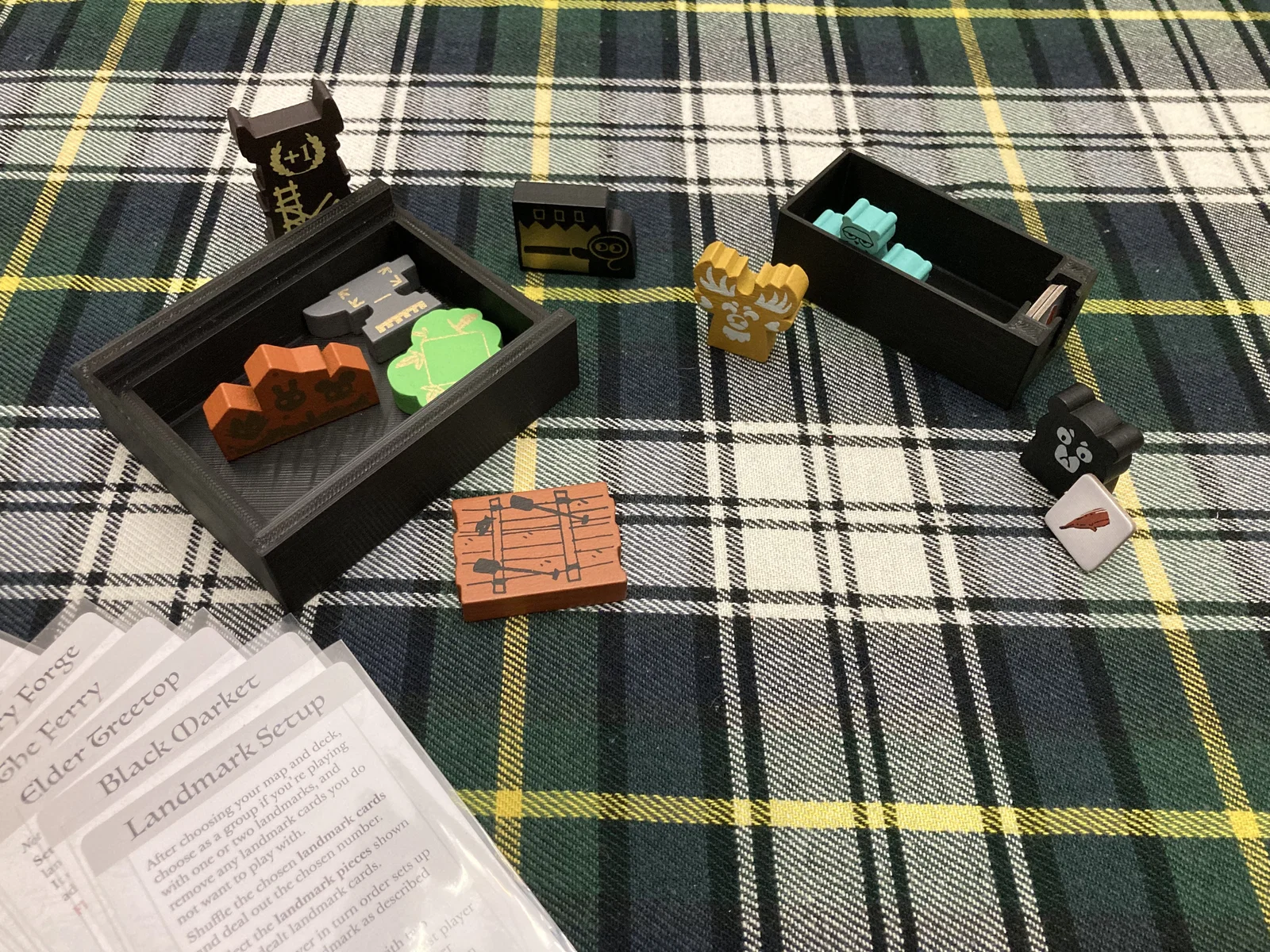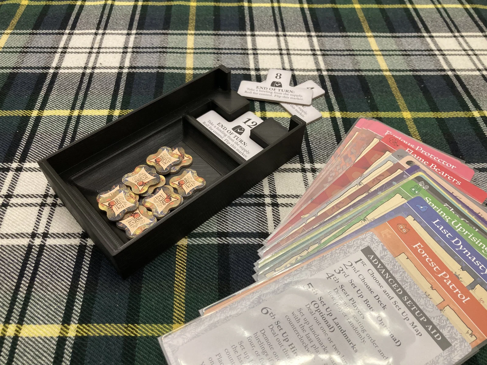 Mình có in mẫu của lumberjackdiz là Root Board Game Magnetic Items Holder và rất khuyến nghị, mình để nó trong hộp này cùng với maps và clearning markers.