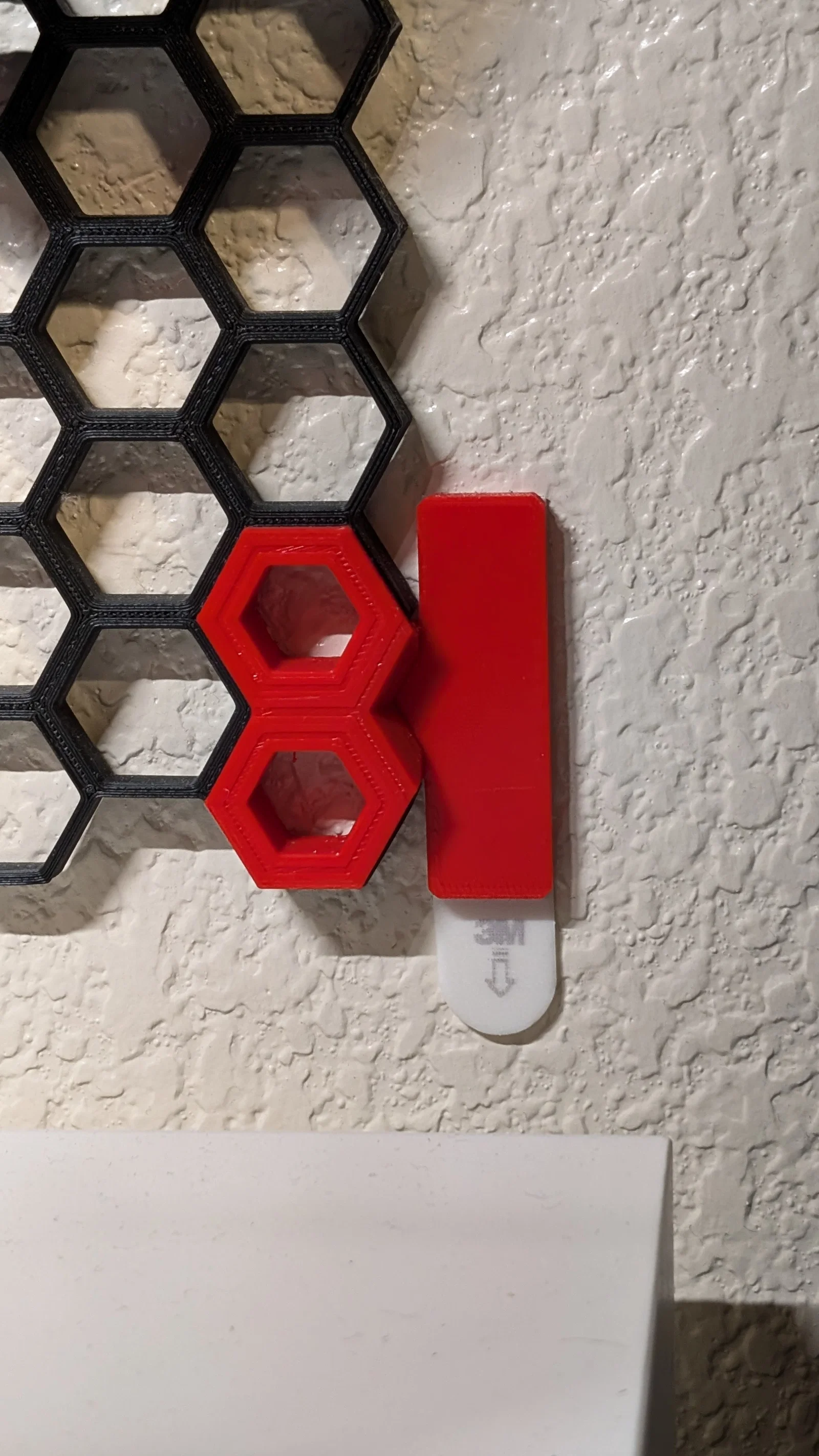 Ngàm/gá đỡ này được tạo ra để gắn các tấm Honeycomb lên tường mà không cần khoan hay tạo lỗ trên tường. Khuyến nghị chỉ dùng cho số lượng ít (4 x 4) tấm honeycomb vì ở phần giữa sẽ không có độ bám dính. Ngàm được thiết kế để dùng với Command Medium Adhesive Strips.
