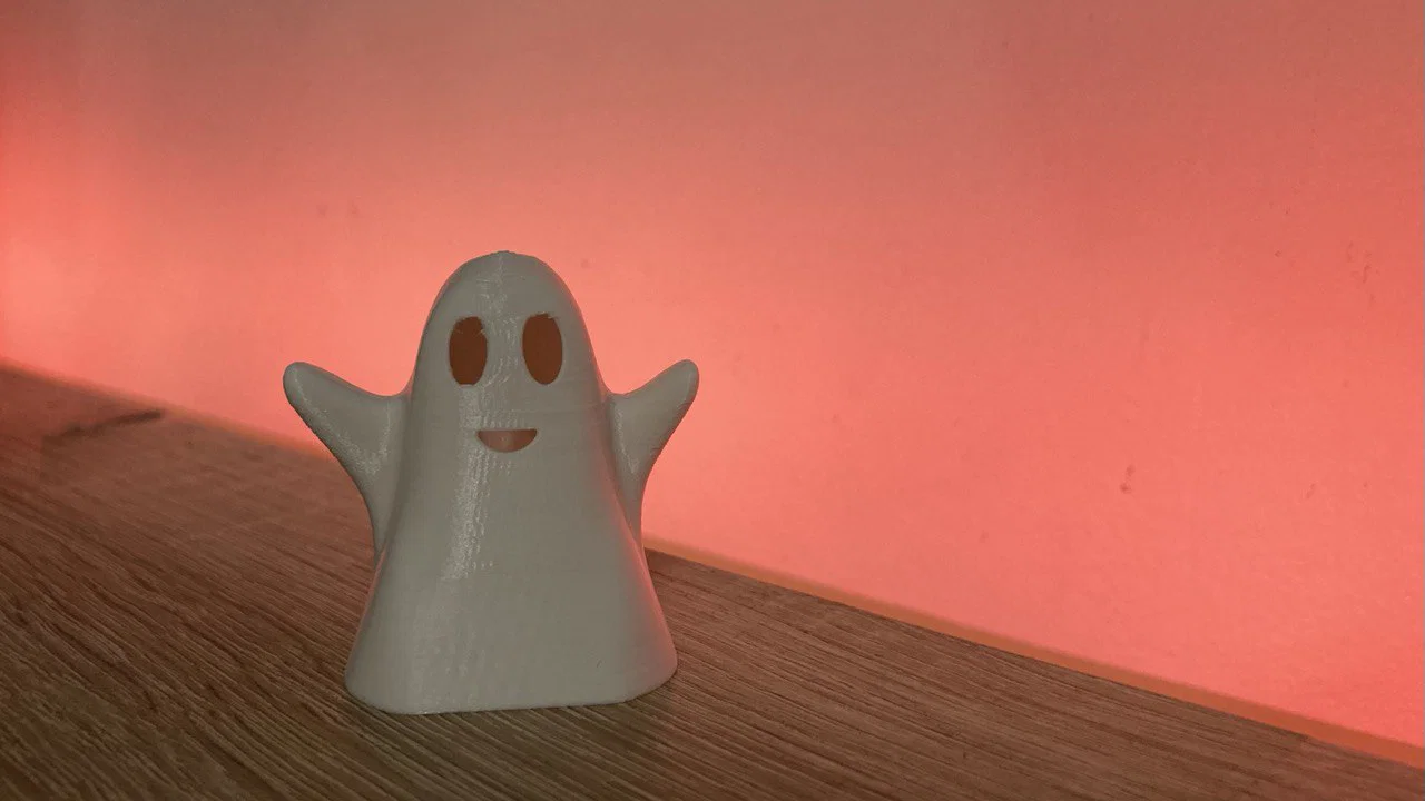 Mẫu Halloween Ghost để trang trí nhà, có 4 phiên bản STL: vách 0.8mm hoặc 1.2mm, có/không có miệng. Gợi ý in: layer height 0.1–0.2mm, 2 walls, giảm tốc ở phần overhang.