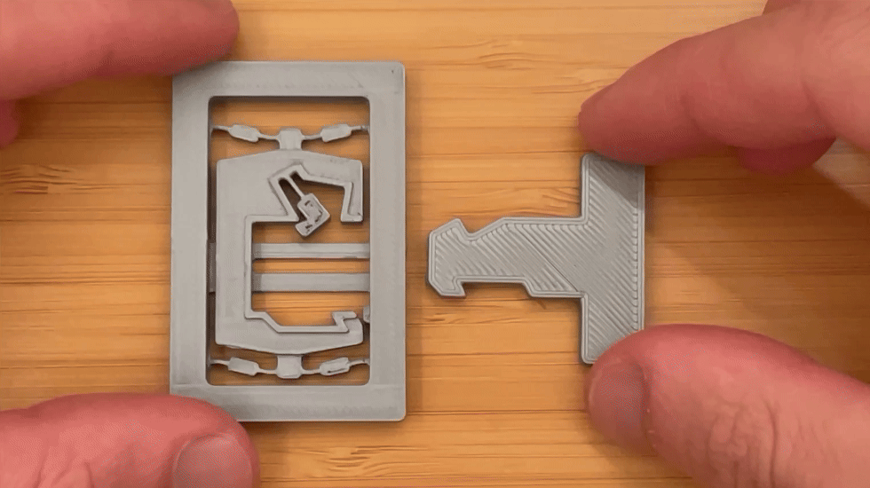 Món fidget toy nhỏ này dùng compliant mechanism để gài (latch) và nhả (release) hai phần chỉ với một cú nhấn. Đây là một minh hoạ khá hay cho việc có thể làm được nhiều thứ mà không cần khớp (joints) hay chi tiết phụ, nhờ các “khớp” mềm (flexible joints).