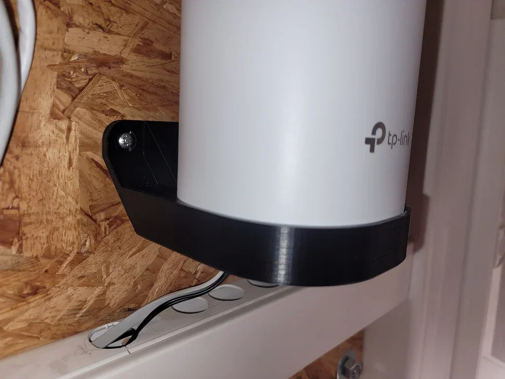 Giá treo tường đơn giản cho TP-Link Deco E4/M4 (AC1200 Mesh). Dễ in, bắt tường bằng 2 con ốc. Chỉ cần đặt AP vào giá, không cần keo hay dây rút; đáy hở thoáng khí và có khe đi dây phía sau.