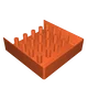 Mình có suy nghĩ khá nhiều về tỉ lệ tổng thể của dự án, nhưng phần lớn là tự “ra hình” theo các ràng buộc. Ví dụ: mặt bàn 180mm của Prusa Mini chỉ chia được thành một số lượng ô “đẹp” nhất định; cuối cùng mình chọn 5 thay vì 4 hay 6, vì 4 thấy chưa đủ phức tạp còn 6 thì hơi nhỏ, với lại mình muốn số lẻ để có một kênh ở giữa. Tuy nhiên, hai bên thành và các trụ đỡ cũng chiếm chỗ, nên cái “ô vuông” 180mm/5=36mm rốt cuộc thành “vuông” 30mm x 26.068mm. Mình không khuyến khích scale xuống, nhưng vì nó đã fit bàn 180mm rồi nên chắc đa số cũng không cần. Ngược lại, scale lên thì ổn, và cũng không quá khó để remix giữ nguyên tỉ lệ cho bàn in lớn hơn để làm dòng suối rộng và/hoặc dài hơn. Bạn cũng có thể xếp đầu ra của một bàn lên trên đầu vào của bàn khác nếu bể chứa (sump) đủ dài.