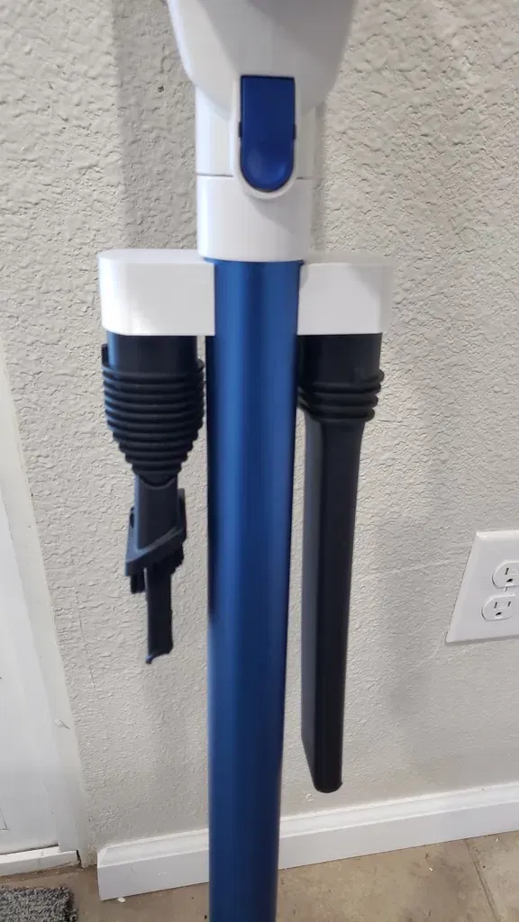Tôi đã thiết kế cái này cho máy hút bụi cầm tay không dây Orfeld của tôi (tìm thấy trên Amazon), tuy nhiên tôi sẵn sàng đoán rằng nó cũng sẽ phù hợp với các máy hút bụi cầm tay giá rẻ từ Trung Quốc khác, có lẽ không phải là những thương hiệu nổi tiếng. Nó được thiết kế để 2 đầu công cụ đi kèm có thể giữ trên chính máy hút bụi, vì vậy khi bạn dọn dẹp nhà cửa, các phụ kiện của bạn sẽ đi cùng bạn thay vì bị giới hạn ở đế sạc. Thiết kế này gắn ngay vào ống, nếu bạn thấy nó quá lỏng, bạn có thể thu nhỏ một chút hoặc cho một chút keo lên đó. Các công cụ vừa khít vào các lỗ.