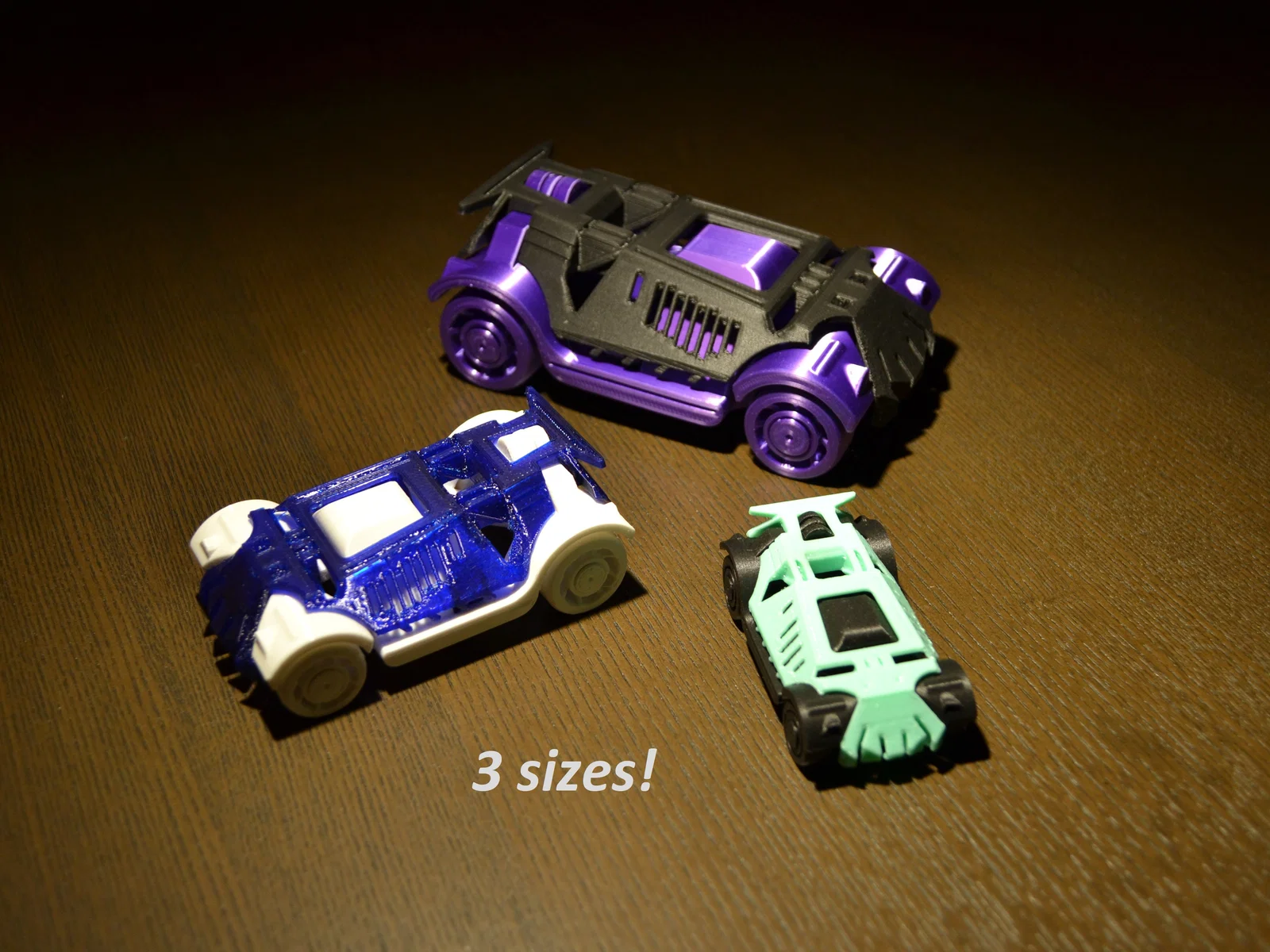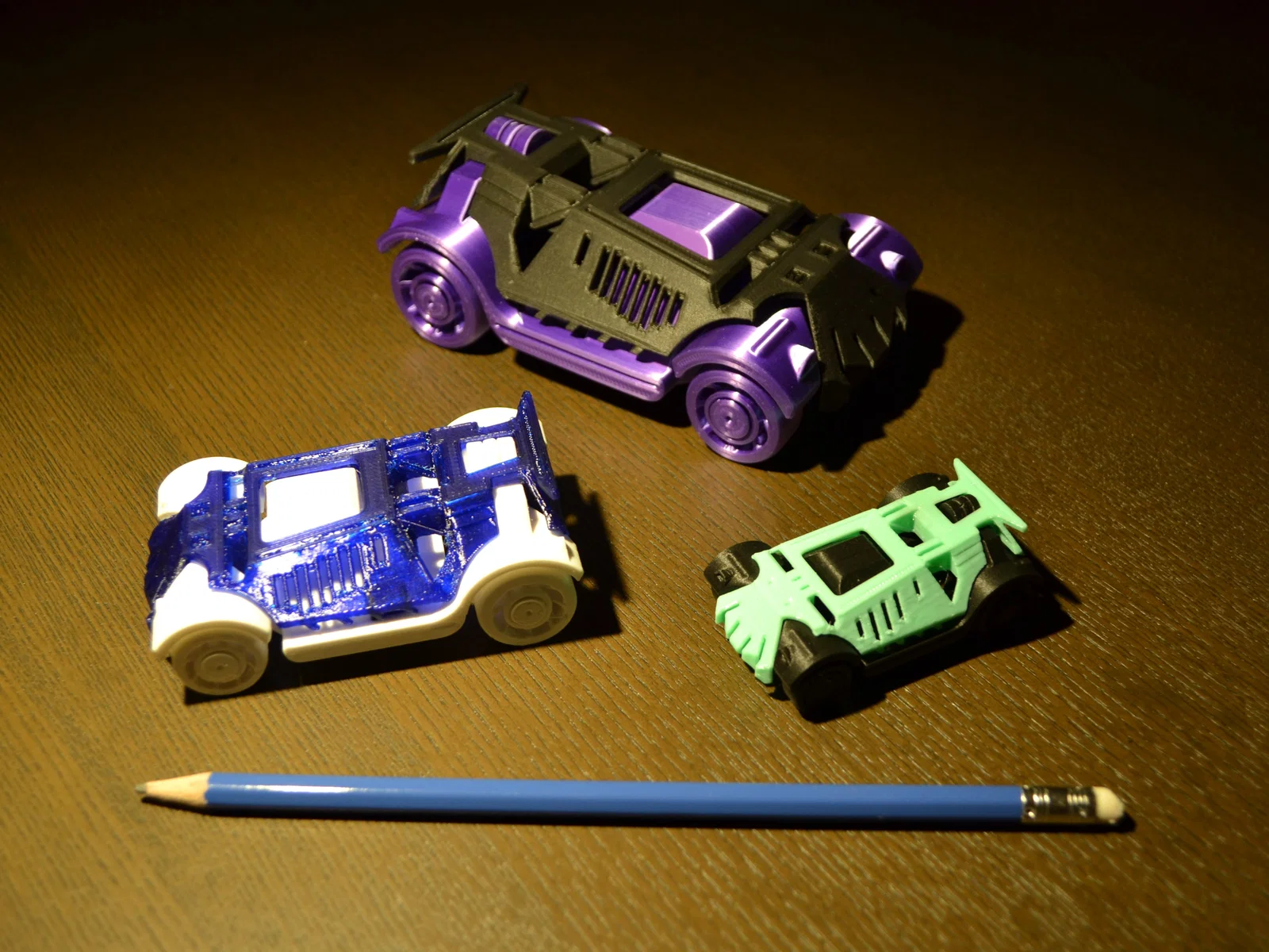Bộ model “Toy Car - Print in place” gồm 2 bản in để ráp xe đồ chơi với bánh xe quay mượt, không cần supports. Có 3 kích cỡ (smol/medium/large). Bản v2 có tolerance lỏng hơn bản gốc.