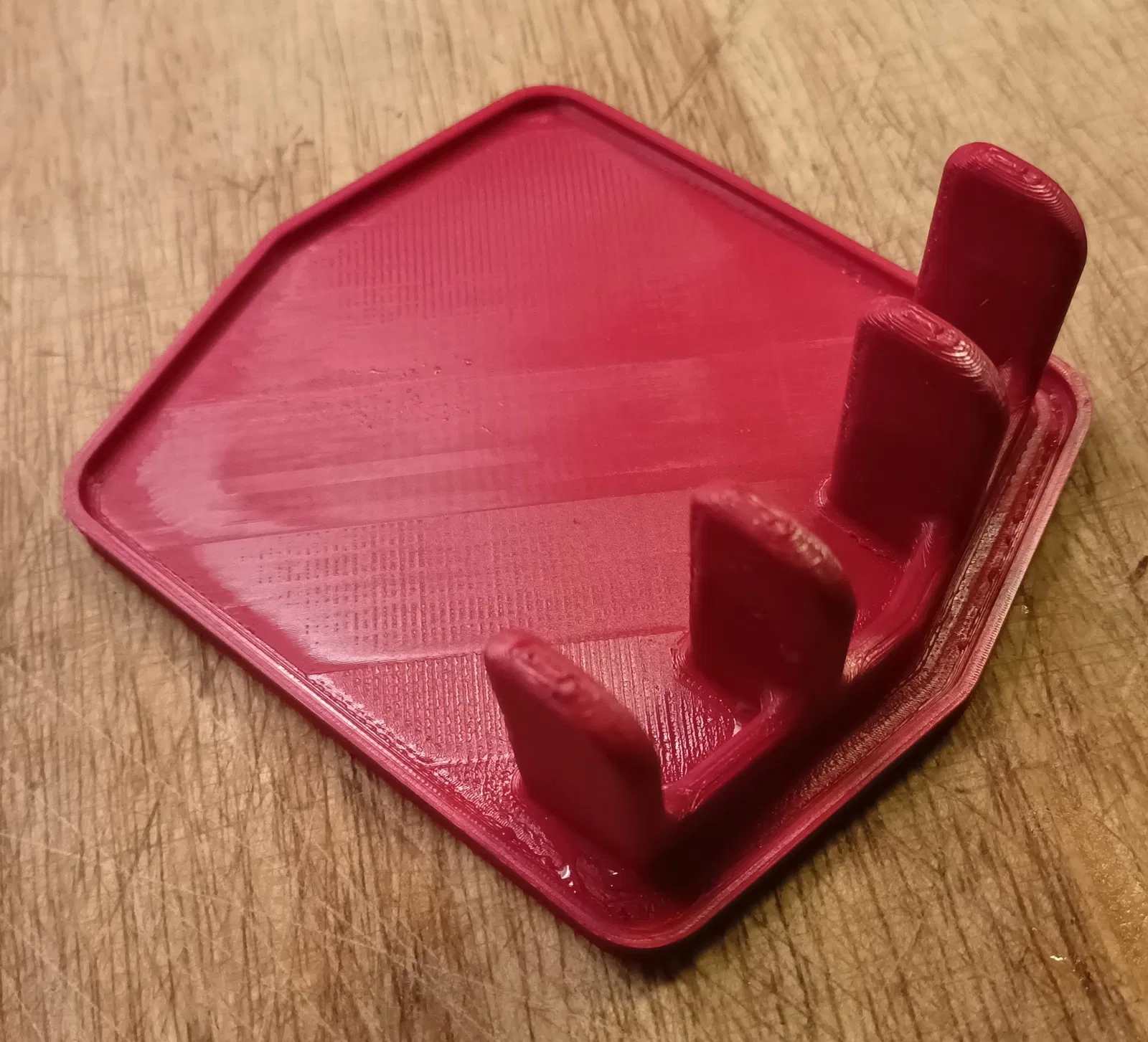 In bằng ASA (chiều cao lớp 0,2mm, 3 lớp vách, 30% độ đầy, bật ủi) nên nó có thể vào máy rửa bát mặc dù không được coi là an toàn cho thực phẩm. PLA không thể vào máy rửa bát nhưng có thể được sử dụng trong các trường hợp khác.