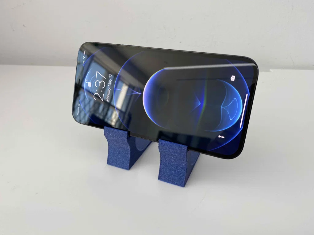 Một cái iPhone stand đơn giản dùng được 2 kiểu. Dựng điện thoại theo chiều dọc (portrait) hoặc ngang (landscape) để coi video và làm nhiều thứ khác.