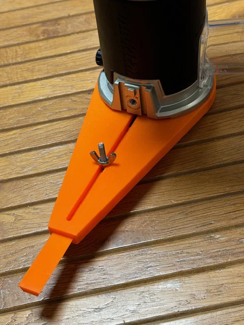 Gắn baseplate này vào Makita Palm/Trimmer Router (RT0701C/XTR01Z/DRT50ZX4) để cắt lỗ/vòng tròn nhỏ dễ dàng, bắt đầu từ bán kính khoảng 12mm. Khuyên in PLA hoặc PETG, dùng ốc M4 và chốt canh tâm 3mm.
