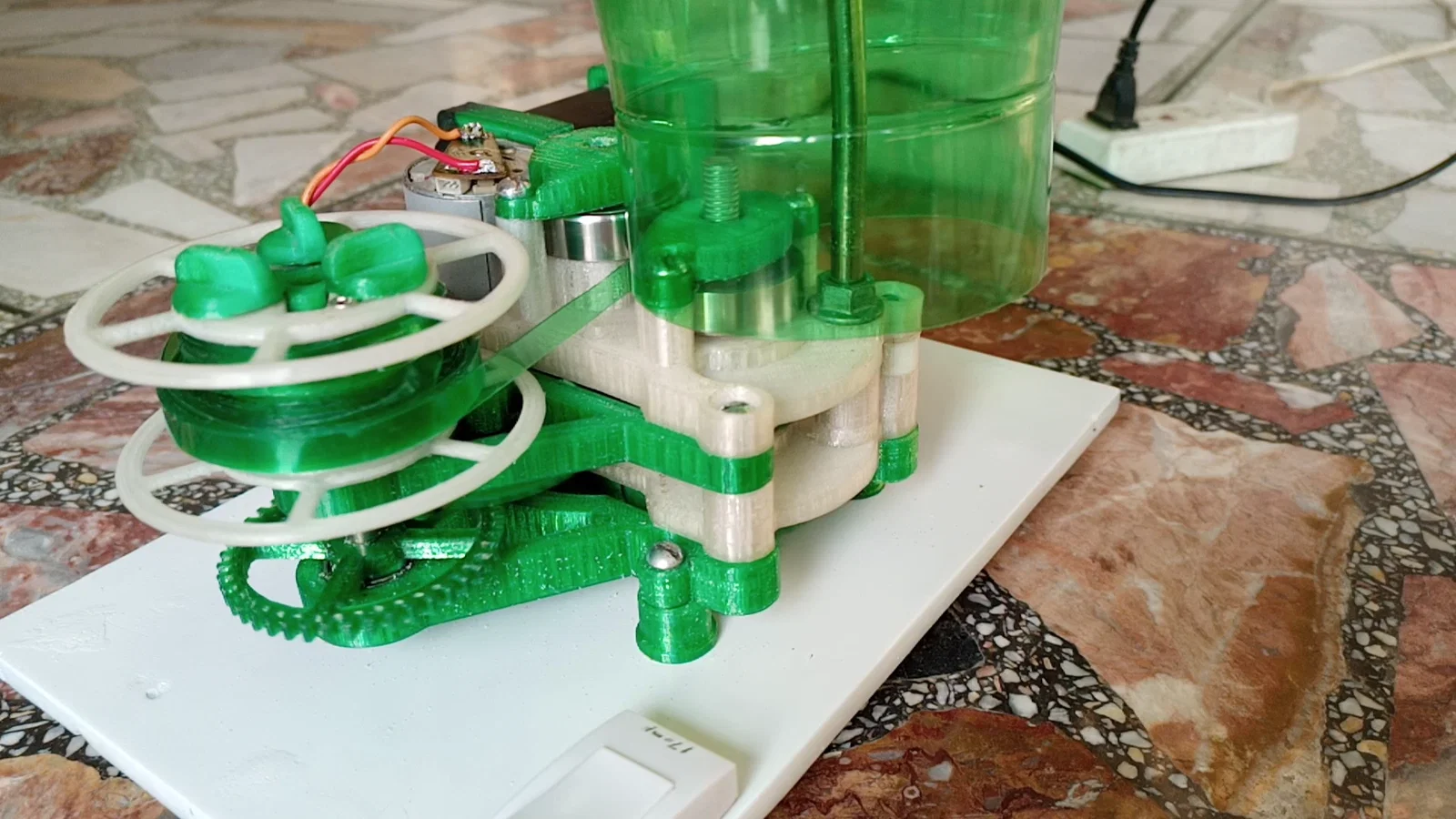 Cơ chế hoạt động của máy tập trung vào việc tạo ra những sợi dây có độ rộng ổn định, giúp quá trình kéo sợi nhựa sau đó được trơn tru và ít bị đứt đoạn hơn. Bộ phận chính của máy bao gồm các trục quay, bánh răng và khung đỡ được in 3D chắc chắn, kết hợp với một động cơ để hỗ trợ quá trình cắt tự động. Đây là một công cụ hỗ trợ đắc lực trong hệ sinh thái tái chế rác thải nhựa tại gia, giúp bạn chủ động hơn trong việc tìm kiếm nguồn nhựa nguyên liệu mà không tốn kém chi phí quá lớn.