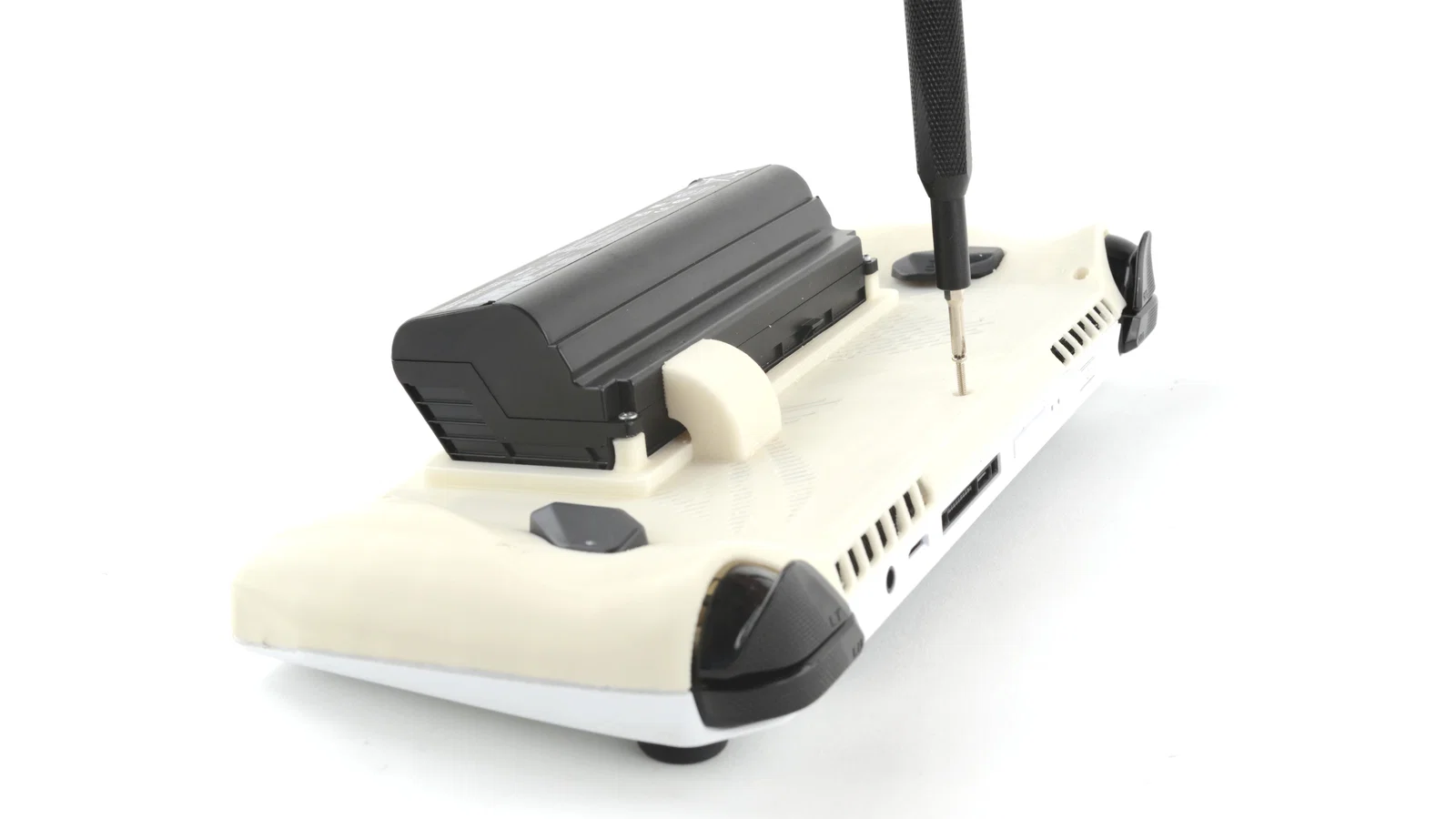 Mẫu backplate ROG Ally đã được mod để gắn pin laptop ASUS A42N1403, cho dung lượng gấp đôi so với pack pin lithium polymer zin bên trong máy. Có link hướng dẫn mod đầy đủ từ iFixit để làm theo.