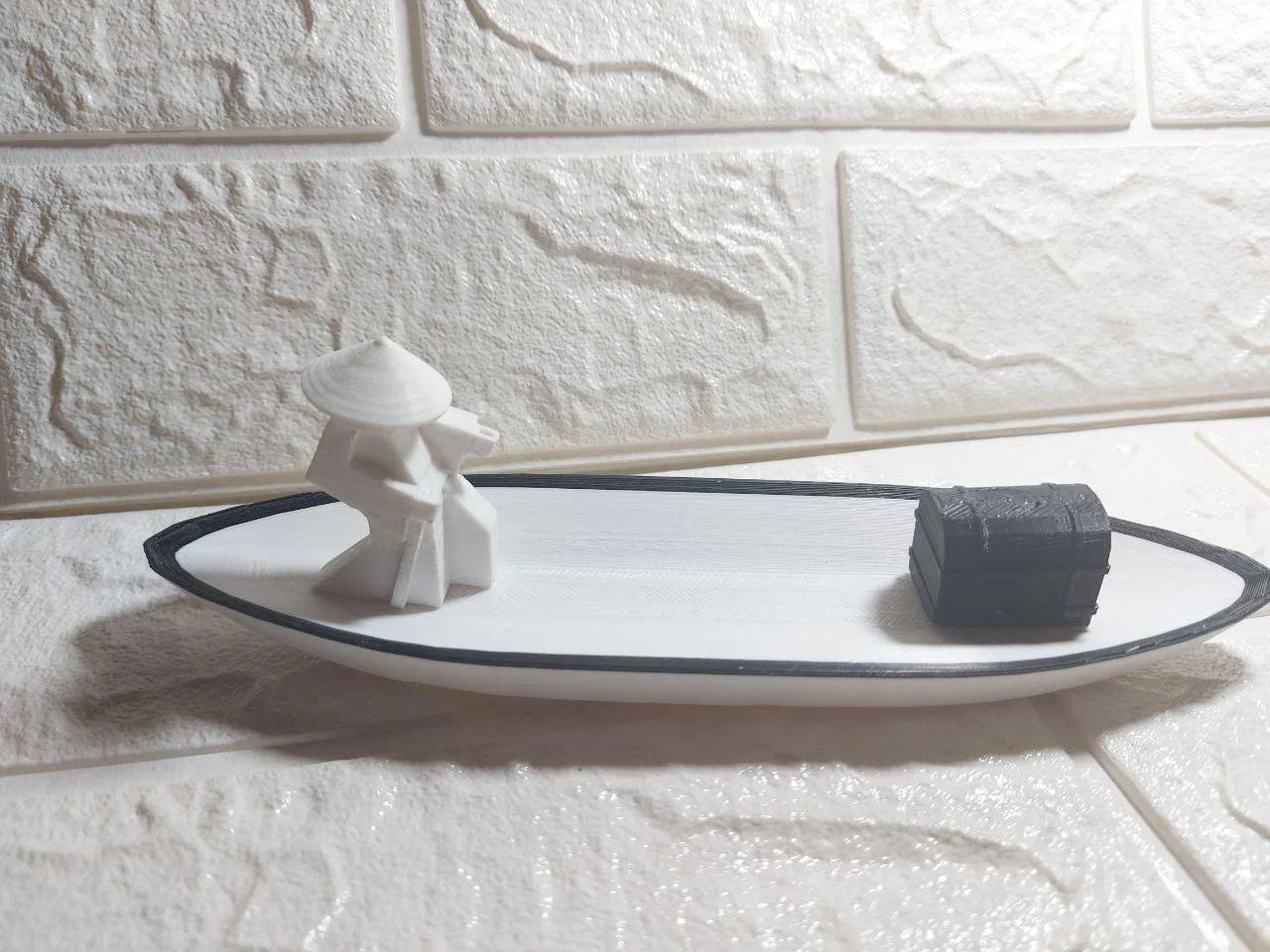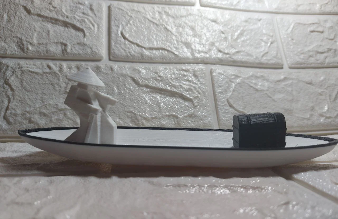 Sự kết hợp giữa hình tượng người lính Samurai cùng chiếc rương nhỏ đặt trên thuyền tạo nên một tổng thể vô cùng thú vị. Đây chắc chắn là món quà tuyệt vời dành cho những ai thích sự độc bản và sáng tạo trong bộ sưu tập đồ trang trí in 3D của mình.