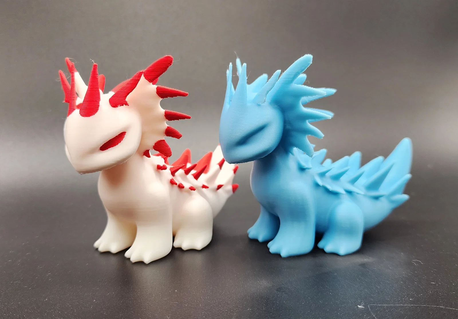 Mẫu rồng/thằn lằn do AI tạo, thiết kế đứng được. Khi in cần supports; bản này được painted 2 màu bằng AMS. Lưu ý AI không tối ưu printability hay độ bền, nên in có thể khó và cần kiên nhẫn.