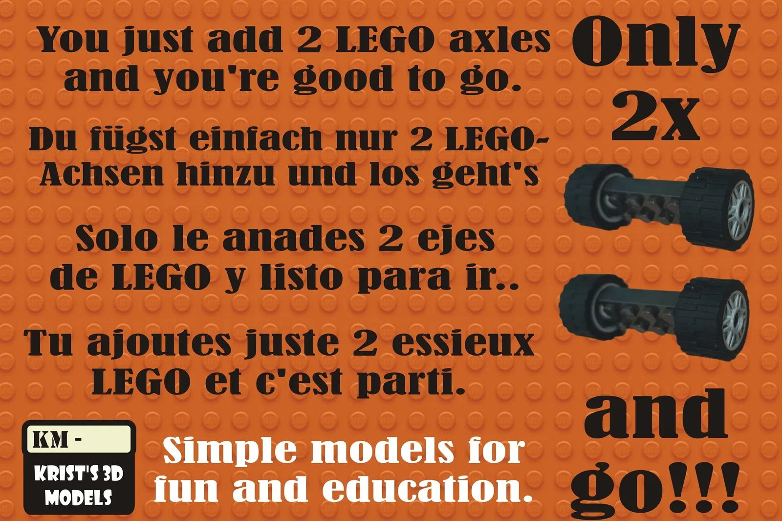 Việc lắp ráp mô hình này cực kỳ đơn giản và không yêu cầu kỹ năng kỹ thuật quá cao. Bạn chỉ cần tải file STL, in bằng máy in 3D của mình, sau đó sử dụng thêm 2 trục bánh xe LEGO tiêu chuẩn là đã có ngay một chiếc xe hoàn chỉnh để lăn bánh trên mọi địa hình bàn làm việc. Đây là dự án hoàn hảo cho cả trẻ em lẫn người lớn, giúp mang lại những giây phút giải trí thư giãn sau những giờ làm việc căng thẳng.