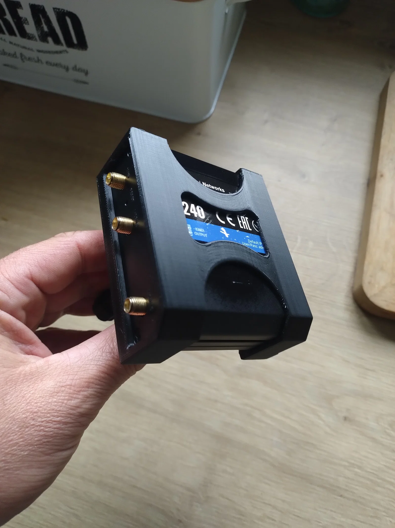 Cái support này giúp đặt RUT 240 và bộ 4G Wireless Router nổi tiếng lên một ống, đồng thời có thể lắp/tháo nhanh.